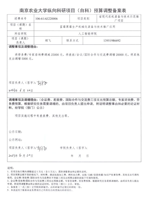 南京农业大学纵向科研项目(自科)预算调整(学院)公示