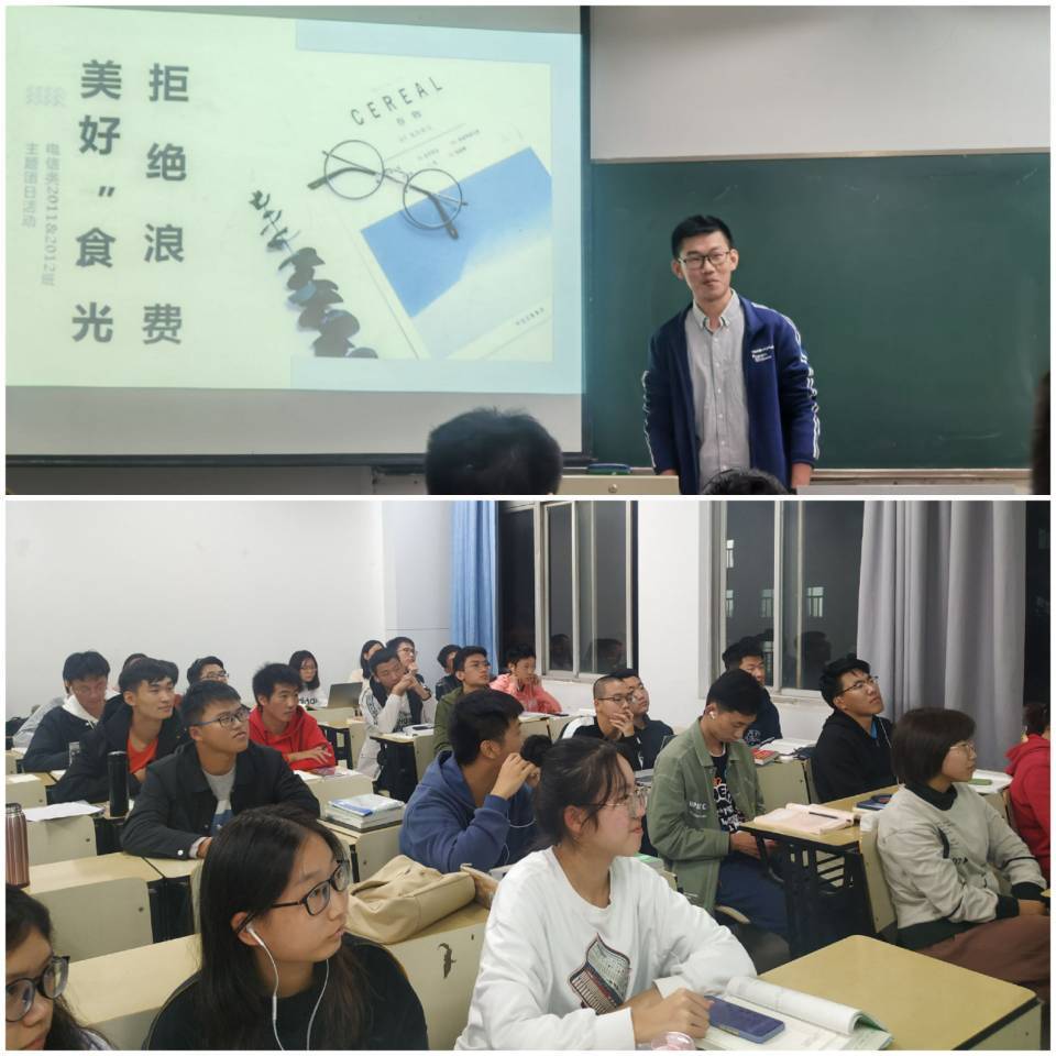 电信类、计科、网工、大数据、自动化等专业的团支部纷纷开展了主题团会活动。团会上,各个同学分享了对于勤俭节约的认识以及看法,为如何真正落实好光盘行动建言献策,并对自己之前在餐桌上的浪费行为进行了复盘和反思。