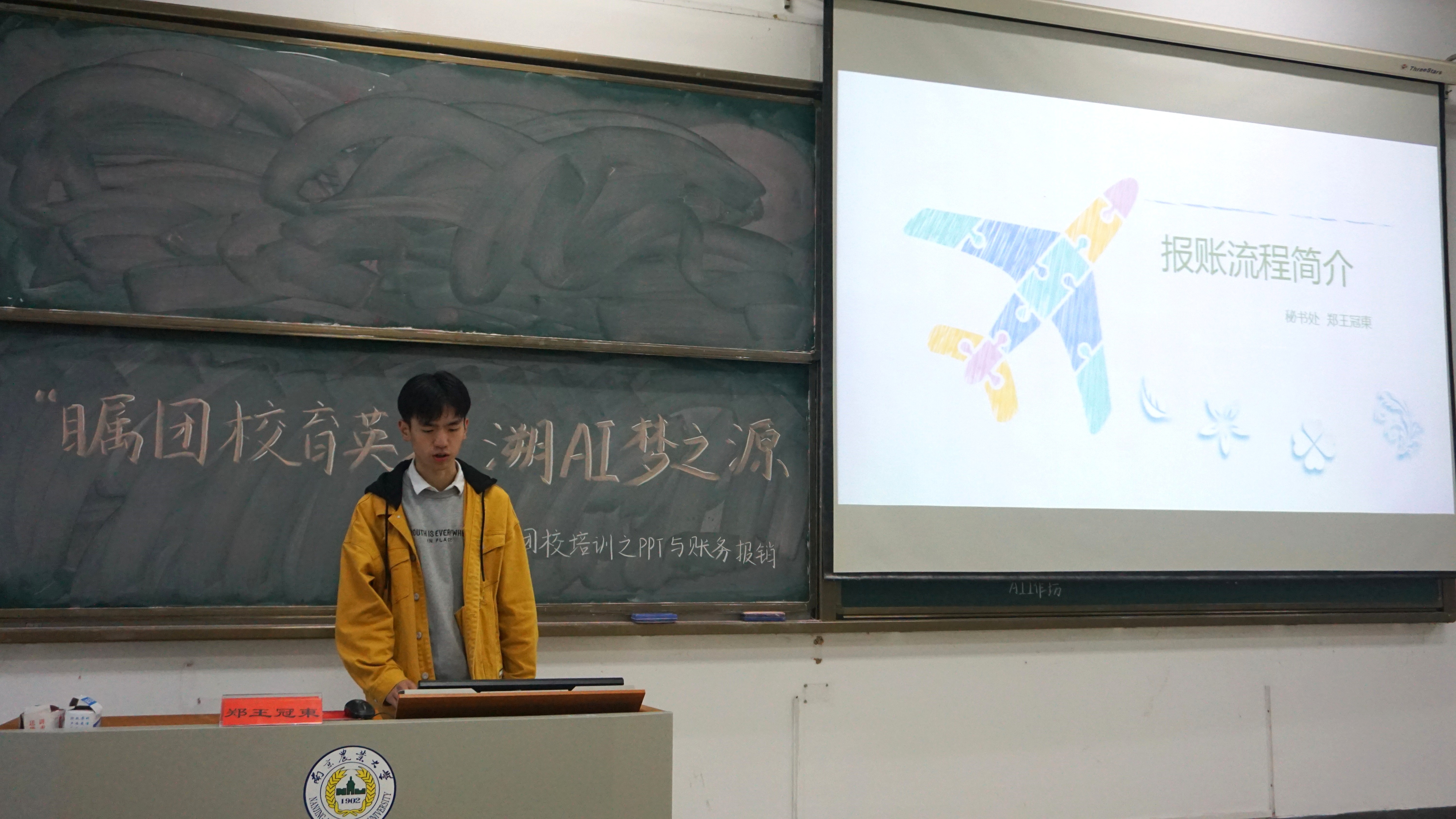 11月4日下午16时30分,在博远楼C201举行账务报销与PPT培训。学院学生团委常委段文萱、学生会秘书处副部长郑王冠東出席本次培训,监察部袁妍璐主持。首先,郑王冠東从账务报销的必要性入手,介绍了账务报销的基本流程和注意事项。随后,段文萱就PPT整体制作、细节掌握和PPT讲解的注意事项等三个部分进行PPT培训。