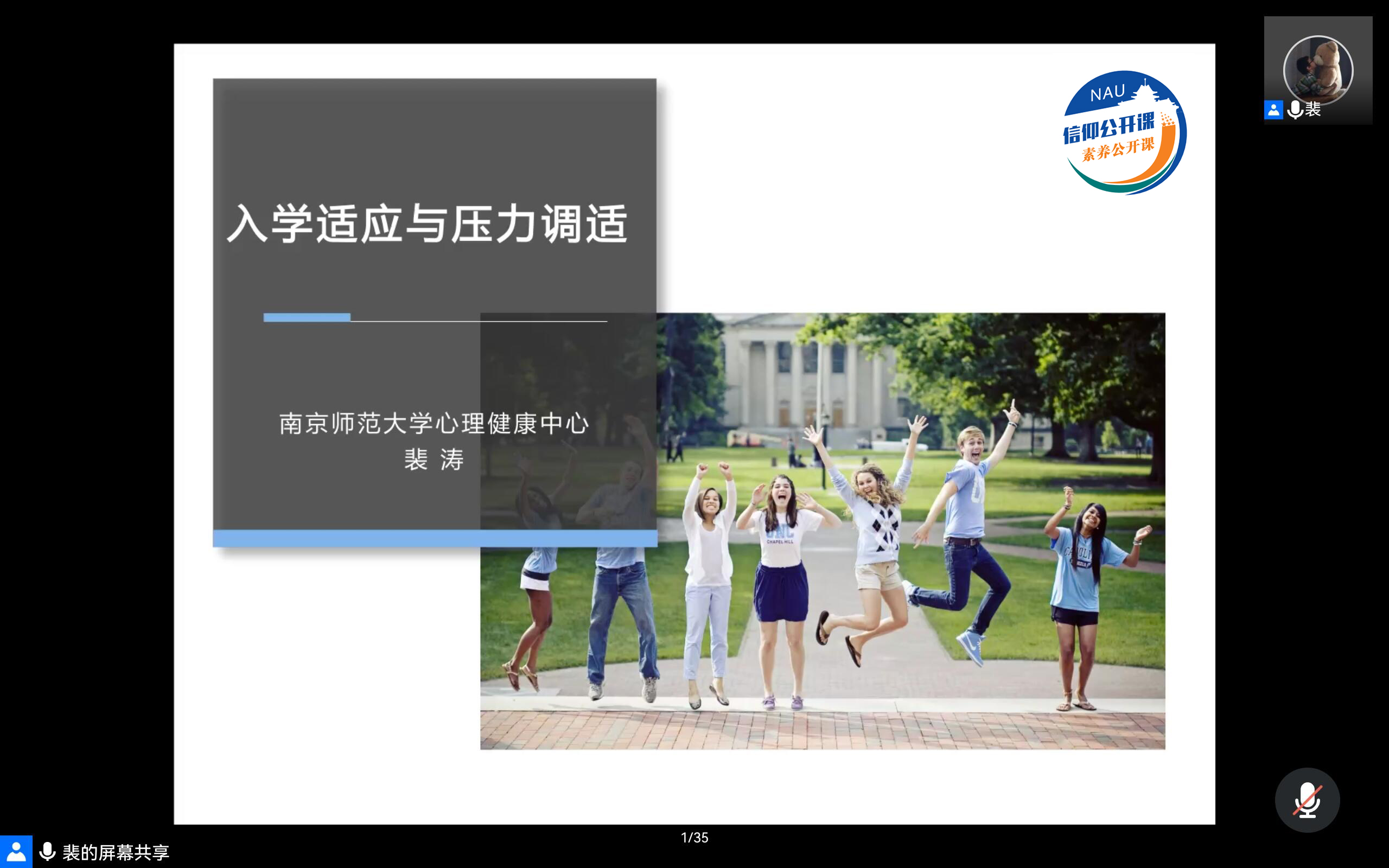 面向2021级新生举办了新生入学教育第一讲——心理健康专题线上讲座。本次讲座的主讲人是南京师范大学心理健康教育咨询中心专职咨询师裴涛副教授,裴教授是临床心理学硕士,中国心理学注册心理师。参与讲座的有永利皇宫赌场