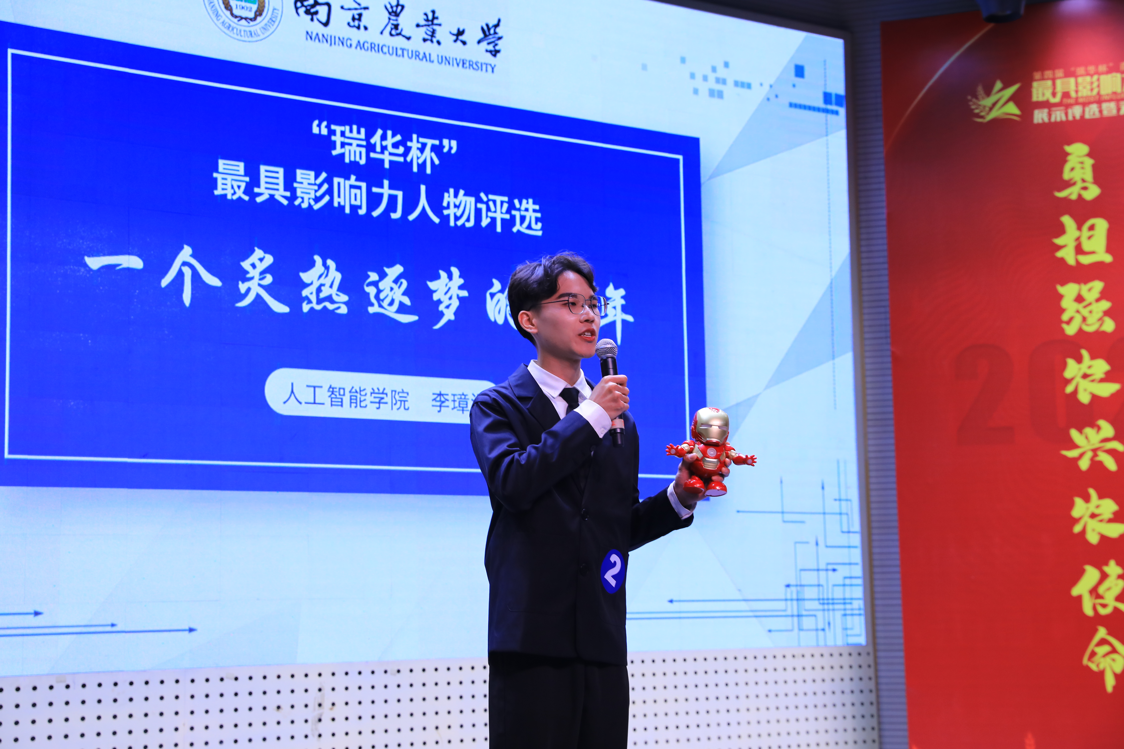 第四届“瑞华杯”南京农业大学最具影响力学生展示评选暨表彰大会于2021年11月30日(周二)19:00 在卫岗校区大学生活动中心报告厅举行。经过学院初评和学校复评,20位本科生候选人在全校的舞台上展现自己,接受现场专业评委和学生大众评委打分。现场展示分为1分钟视频展示和3分钟答辩两个环节。最终,永利皇宫赌场