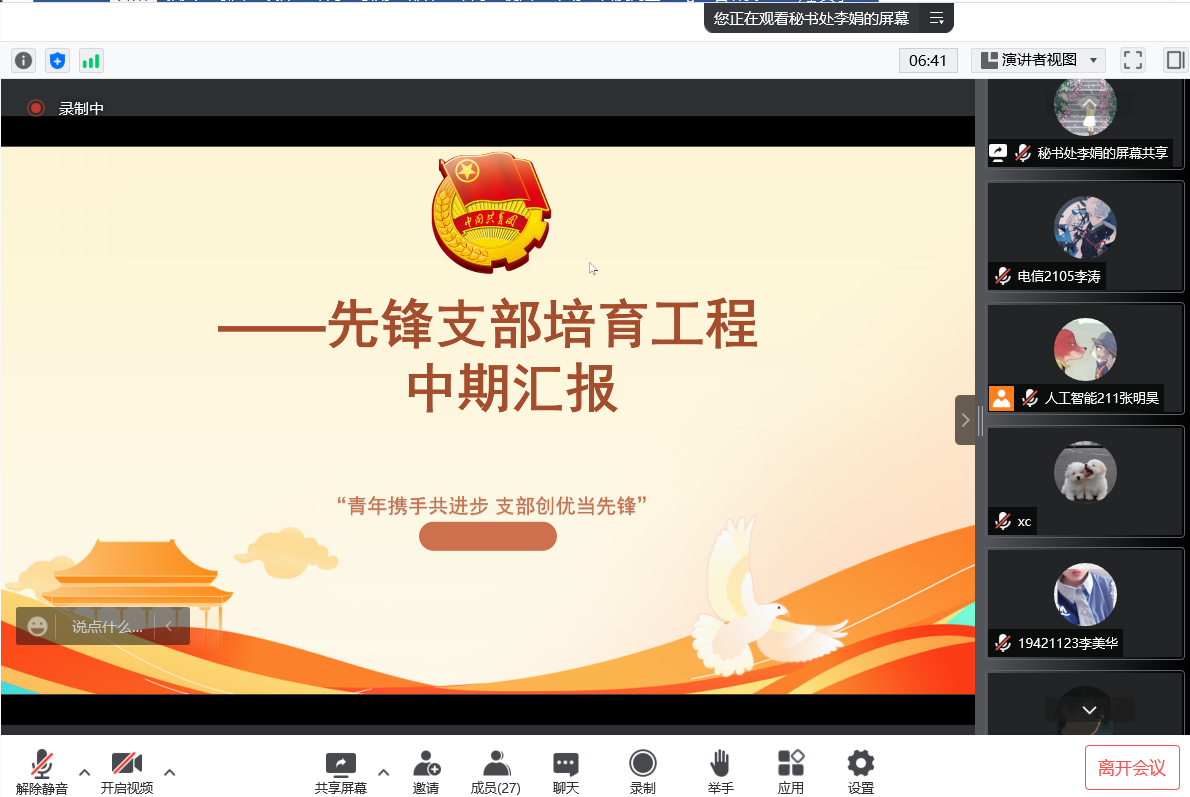 先锋支部培养工程中期汇报在线上举行,学院各团支部汇报“3+X”建设情况并互相交流。永利皇宫赌场