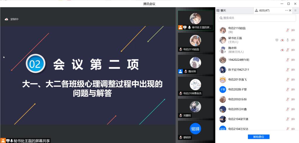 开展“疫”路同行,从“心”出发——团干之家主题会议。院本科生辅导员魏宇宁、各班心理委员出席本次会议。
