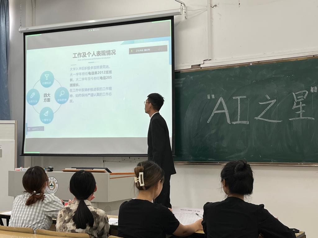 “AI之星”分为道德之星、自强之星、勤学之星、科研之星、服务之星、志愿之星、创业之星、文体之星等八个类别。学生根据自身优势选择一个类别进行申报。活动分为自下而上材料推荐、评审与答辩三个环节。自5月11日开始,学生递交申请材料,由院团委组织评审选出12名候选人进入最终答辩环节。