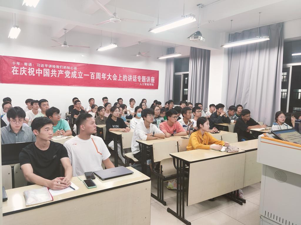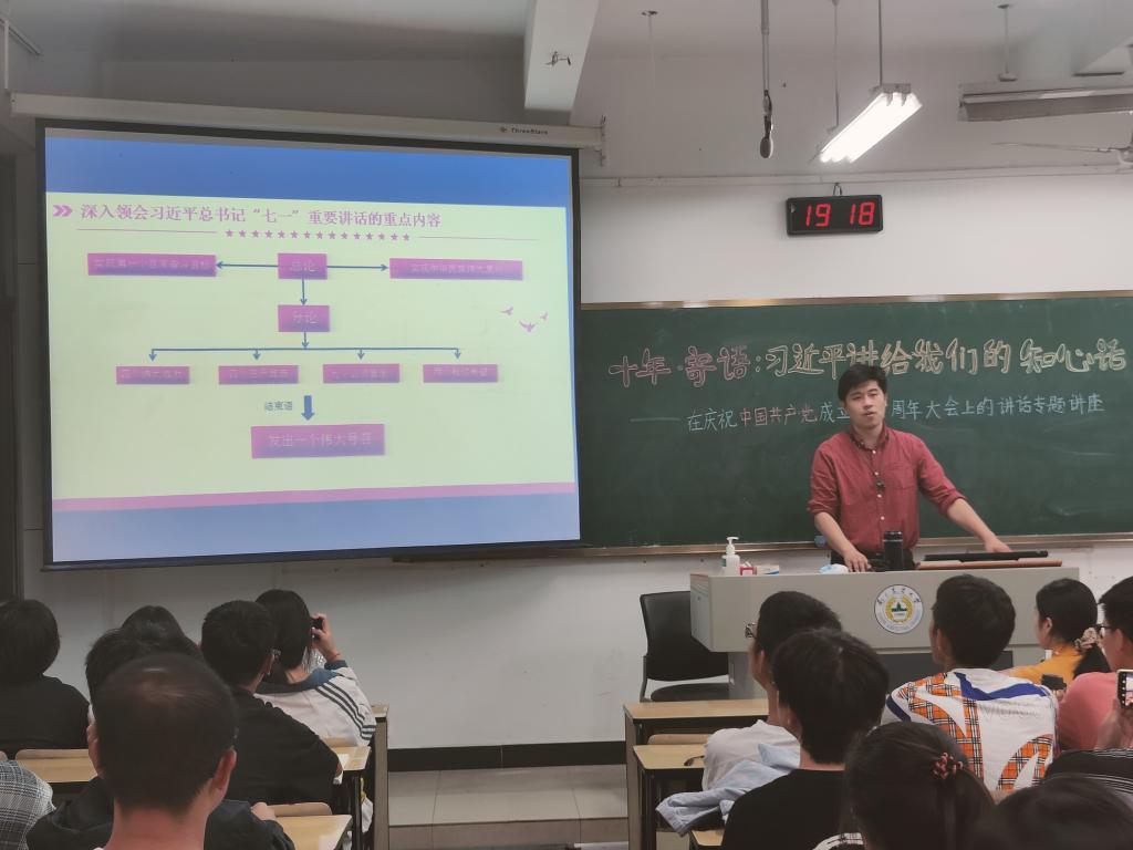 在汇贤楼顺利召开了十年•寄语:习近平总书记讲给我们的知心话——在庆祝中国共产党成立一百周年大会上的讲话专题讲座,并邀请党委组织部正科级组织员何旭作为主讲人。参与人员有学院党员、团员及青年学生代表。