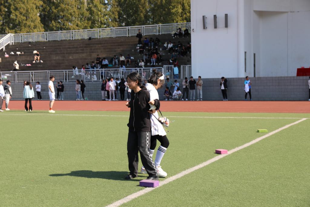 此外,运动会惊喜加入了近期非常流行的飞盘比赛项目,学院邀请到校外专业飞盘教练给学生进行培训并组织了一场表演赛。参与学生在操场上挥洒汗水、绽放笑容,比赛氛围瞬间达到高潮。