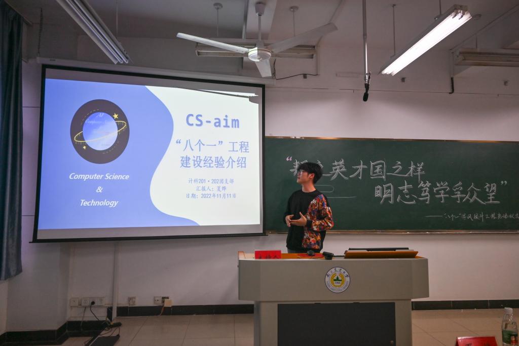 活动伊始,谭彩昕首先介绍“八个一”学风提升工程的背景、主要内容、进行的流程和未来规划。接着她明确项目要求,讲解“八个一”学风提升工程的初衷及意义,提高团支书对“八个一”学风提升工程的认识。随后,“第十批校杰出团支部”代表夏烨分享经验。夏烨先向团支书们展示徽章、全家福等,接着讲述自己团支部通过班级团建、创建新媒体平台,以小组制开展创新创业活动等方式,将“八个一”融入班级建设,形成优良的学风,为团支书们后续工作的开展提供良好示范。随后,魏宇宁讲述提升学风以及提高团支部工作效率的重要性,并且与各班团支书进行面对面交流,有针对性地答疑解惑,让各团支书理解学风建设的意义与作用,促使各团支部积极进行学风建设活动。活动尾声,全员合影留念,此次活动在掌声中圆满落幕。
