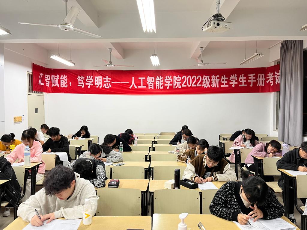 于11月12日晚18:00组织全体2022级新生开展《学生手册》考试,新生辅导员李洪巡考,学院主要学生干部监考。