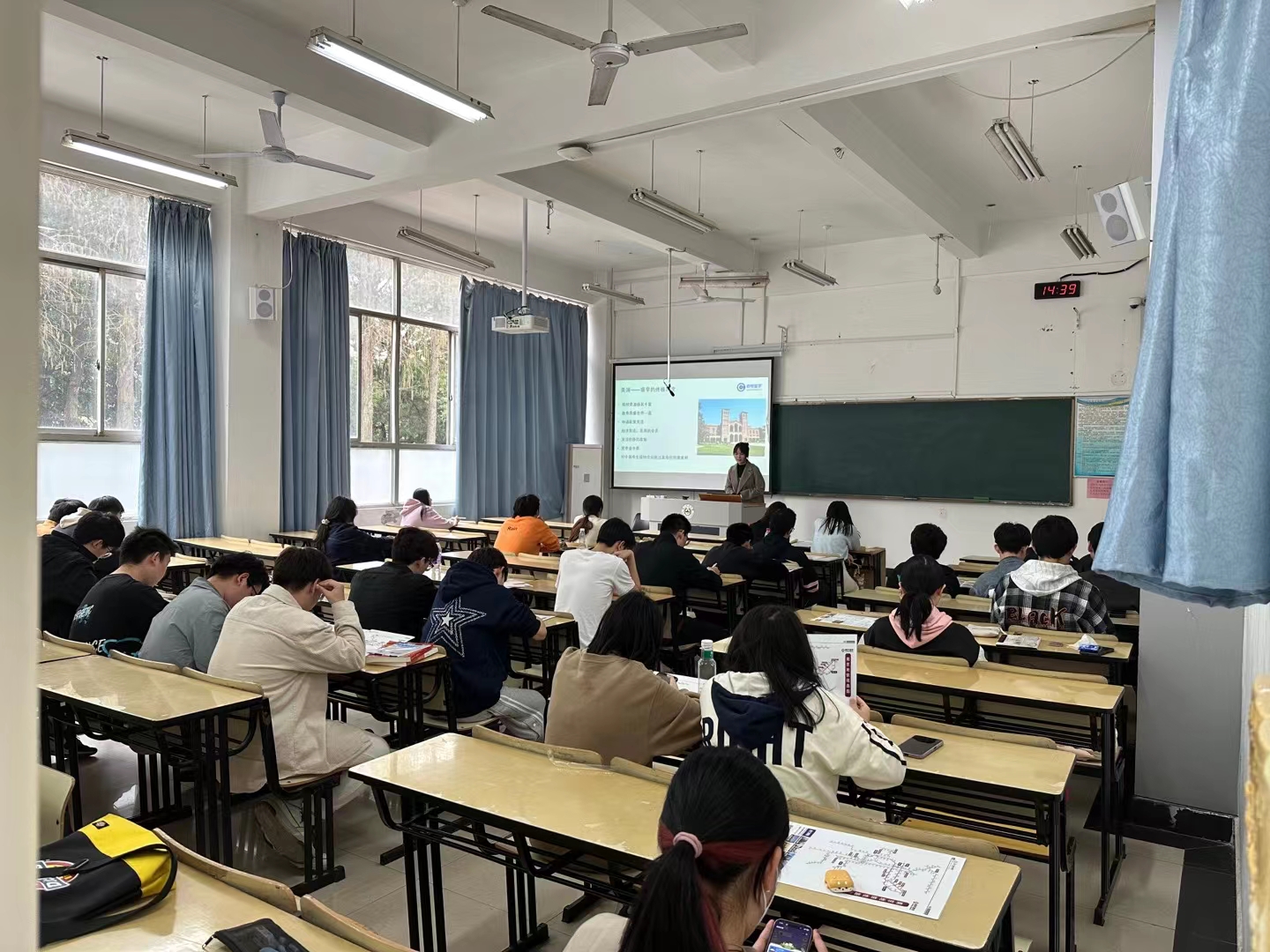 于汇贤楼B104成功举办生涯系列教育之“留学指导讲座”活动。本次讲座特邀朗阁教育资深指导专家黄老师主讲,旨在分享出国出境留学的经验,解决同学们拟计划或正在申请留学过程中遇到的各种问题。
