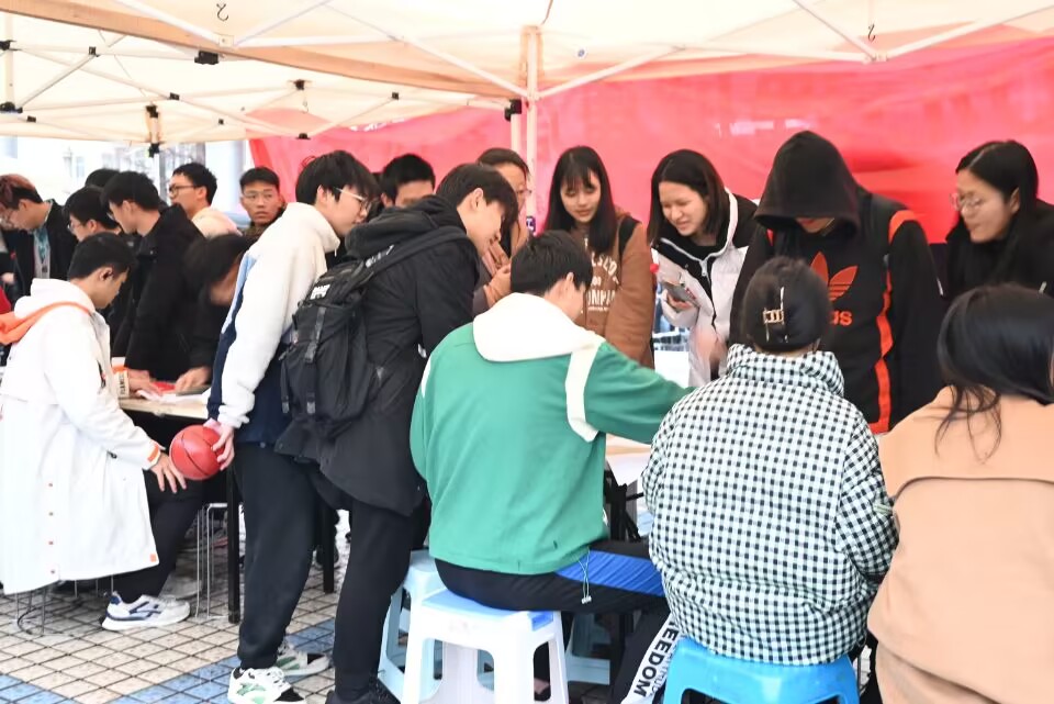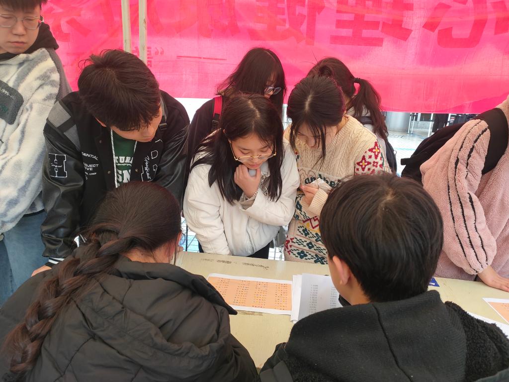 然后是“尔途似锦,歌亦如名”趣味猜歌活动。在听歌识曲的过程中,同学们能够放松身心、陶冶情操。下一个项目是“志趣相投,不亦乐壶”趣味投壶活动。每人有5只箭进行投壶,在规定范围内投中3次及以上则挑战成功。这一项目极大地考验了同学们的耐心和反应能力。