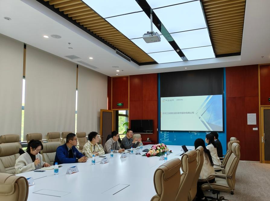 座谈会后,师生共同参观了苏州高新区展示馆。在高新区招商中心沈杰的带领讲解下,通过交互体验方式,从文化底蕴、社会发展、城市建设、生态保护、科技进步、经济发展和未来规划等方面,全方位了解高新区的历史、现在和未来,沉浸式体验高新区在新兴行业及领域数智化变革的最新实践成果。