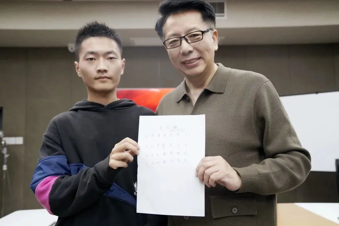 在录制现场,他还现场为主办方赋诗一首,受到工作人员及著名朗诵艺术家、中国教育电视台大型诗歌文化系列节目《诗意中国》总导演张宏老师的点赞。