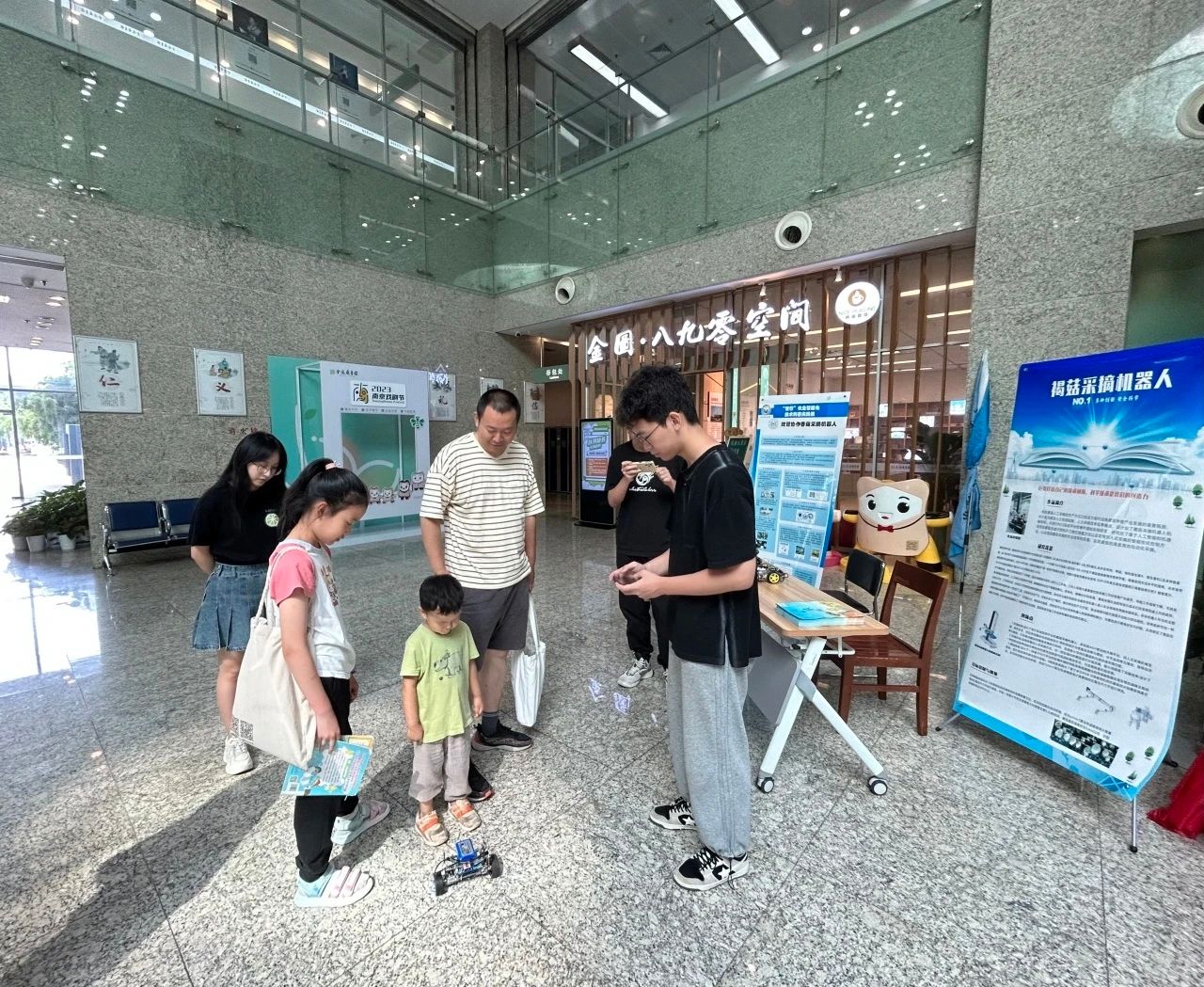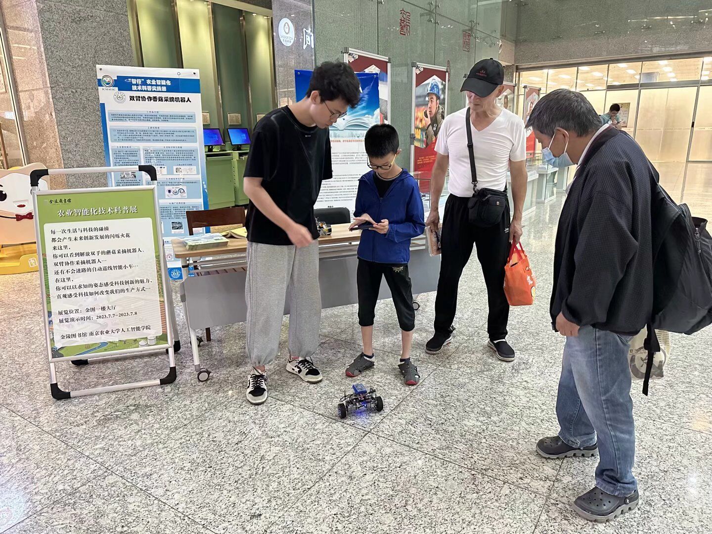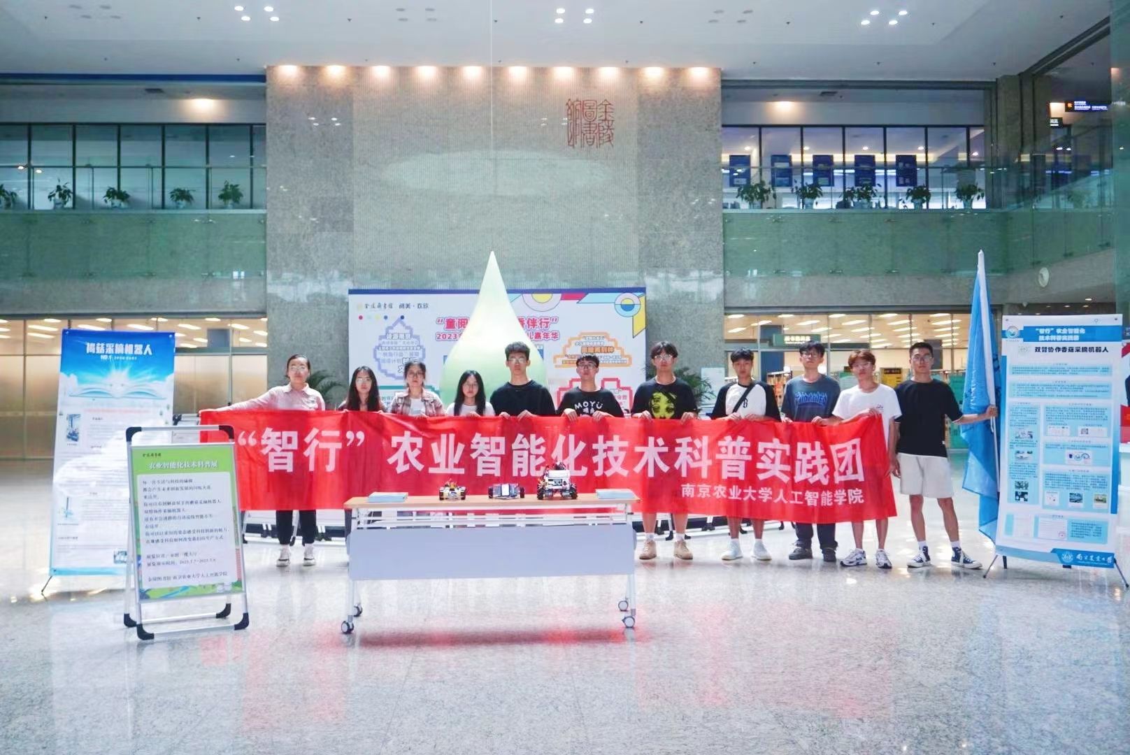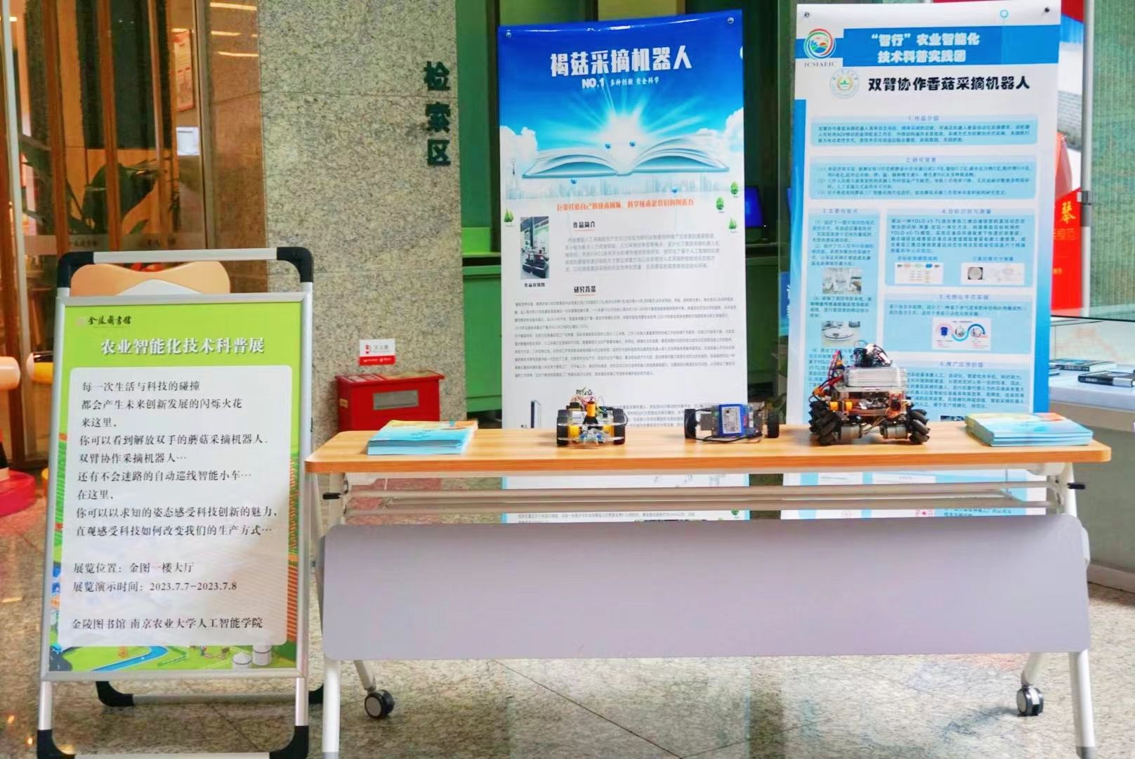 “智行”农业智能化技术科普实践团走进金陵图书馆举办智能农业科普展,展览设置在图书馆一楼大厅面向公众开放,金陵图书馆分馆建设部主任孙振强、永利皇宫赌场