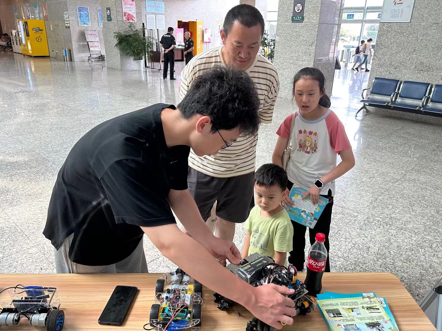 展览现场反响热烈,吸引了各个年龄段的读者。参观者对展出的蘑菇采摘机器人十分好奇,段骞浩向他们介绍了蘑菇采摘机器人的工作原理以及它为蘑菇采摘带来的便利。许多小读者被孙友轩展示的智能车吸引,希望了解到更多农业智能化机器人。