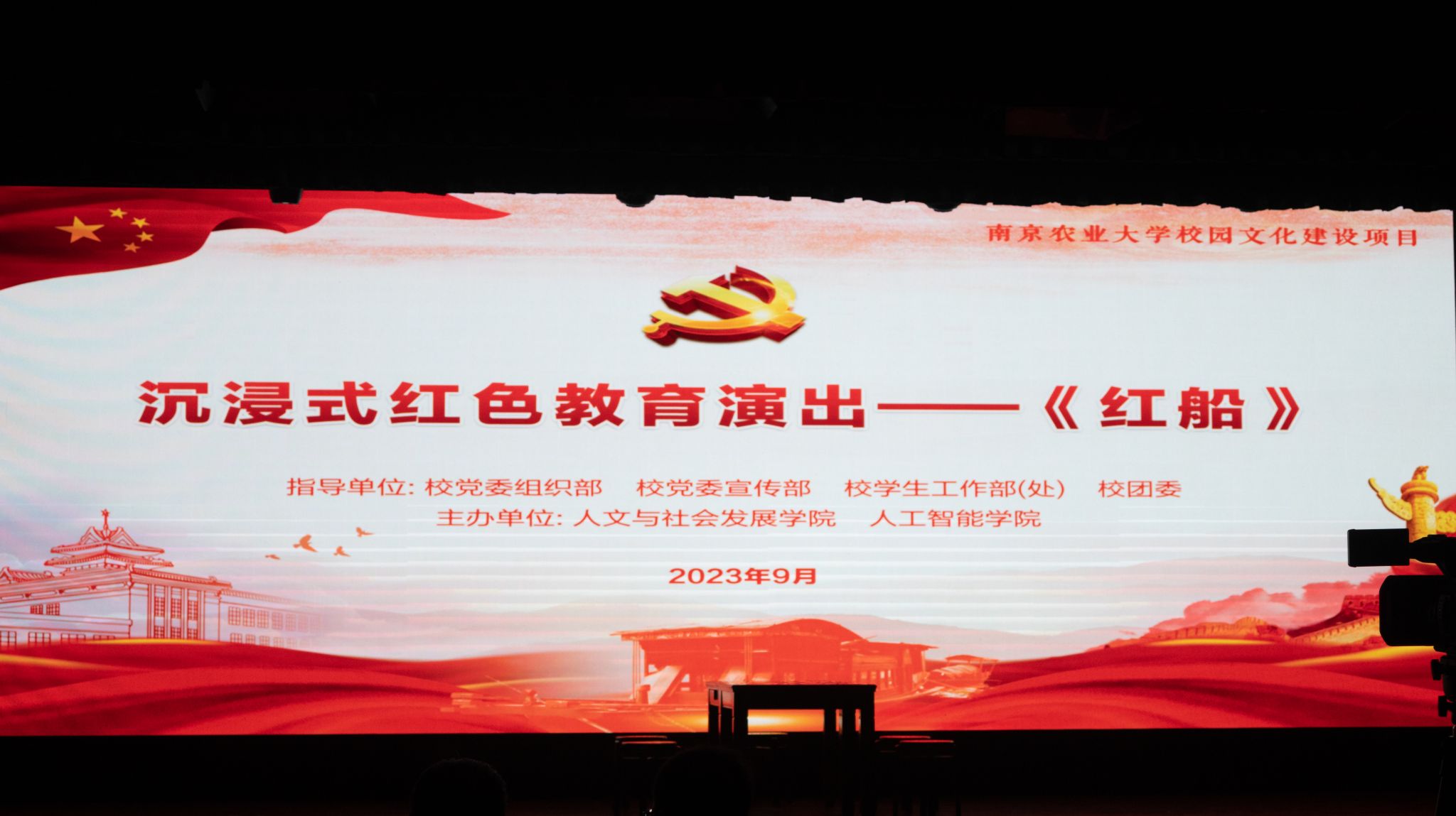 此外,为庆祝两院党委共建,给新生们上好红色教育“第一课”,两院师生共同观看了南京农业大学师生的原创话剧、沉浸式红色教育演出——《红船》,该话剧由人文与社会发展学院殷昊罡教授指导、艺术系学生自编、自导、自演。以“一叶红船承载的红色基因”为线索,重现毛泽东、董必武、李达、李汉俊等13位一大代表创立中国共产党的光荣历程,再现建党的恢宏时刻,谱写了一部“弘扬‘红船精神’、传承初心使命”的时代赞歌,演出跌宕起伏、引人入胜,引发了现场师生阵阵掌声。