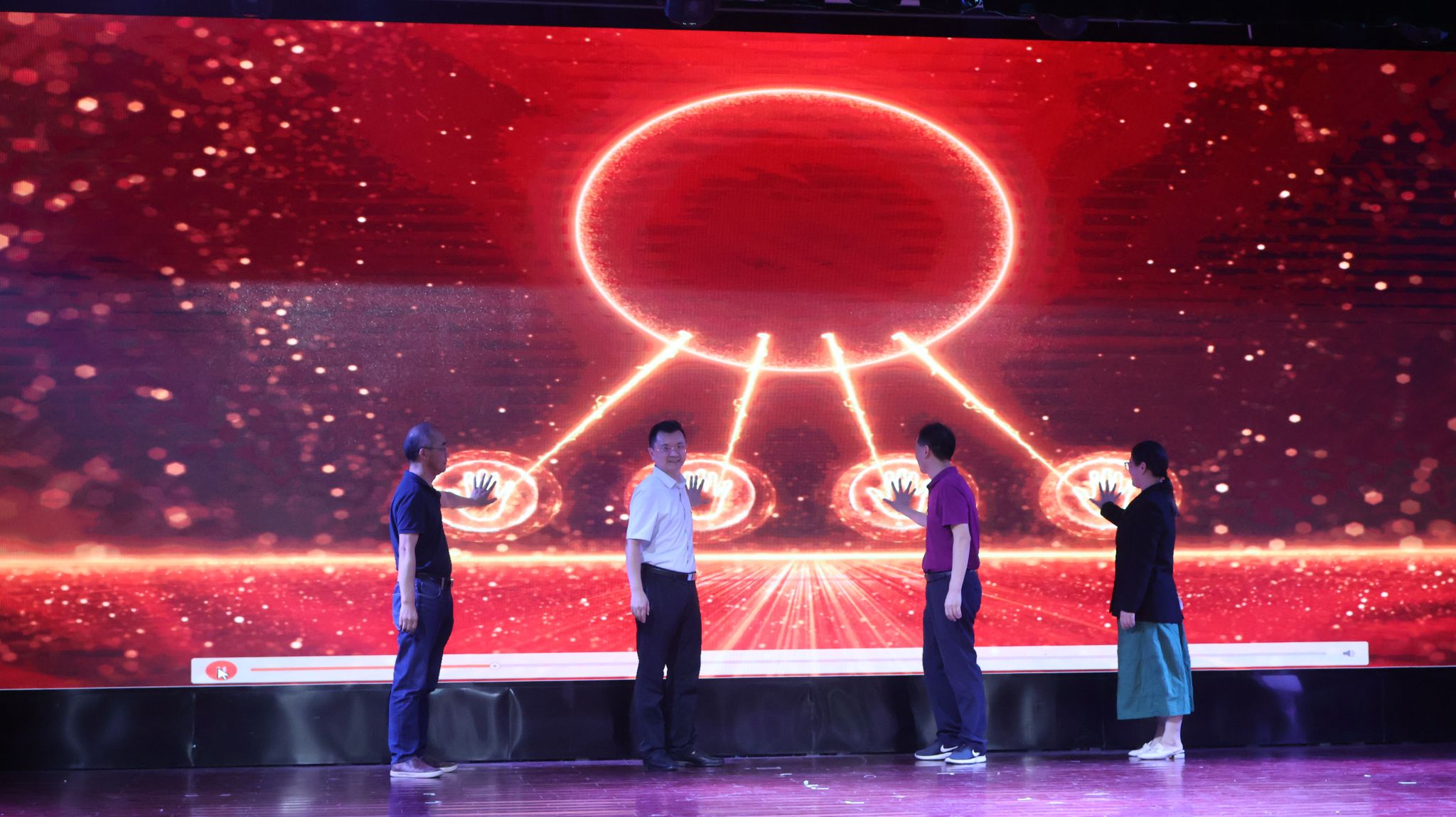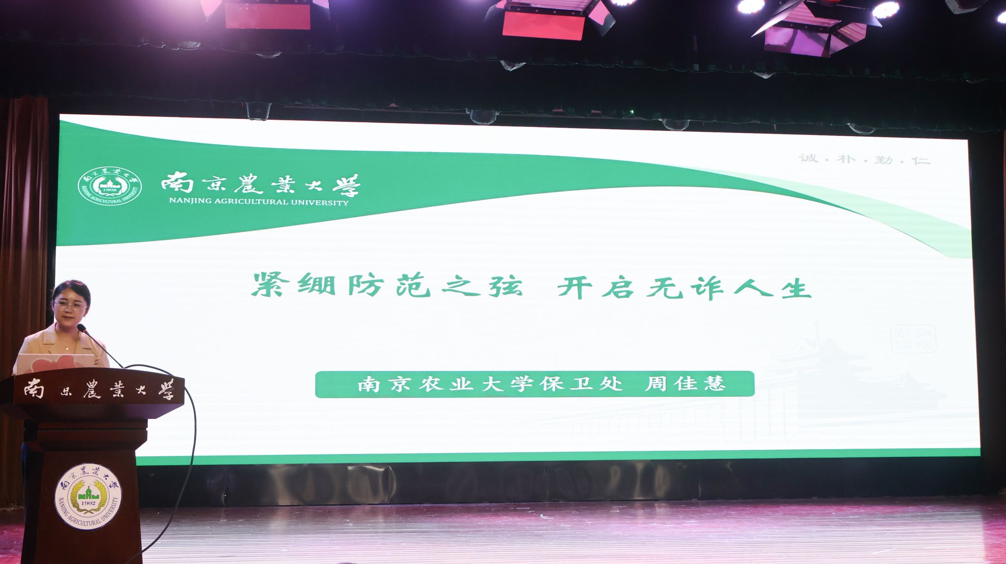 党委书记田永超、人文与社会发展学院党委书记李日葵、校保卫处副处长杨坚、南京电信副总经理张燕四位领导共同在大屏上按下手印,完成“人”“人”防诈骗主题教育启动仪式,并与新生们共同参加了防电诈主题教育课。校保卫处消防科副科长周佳慧通过3个案例写真和科普视频深入浅出地讲述了网络诈骗的危害以及预防措施,为新生们敲响谨防电信诈骗的警钟。