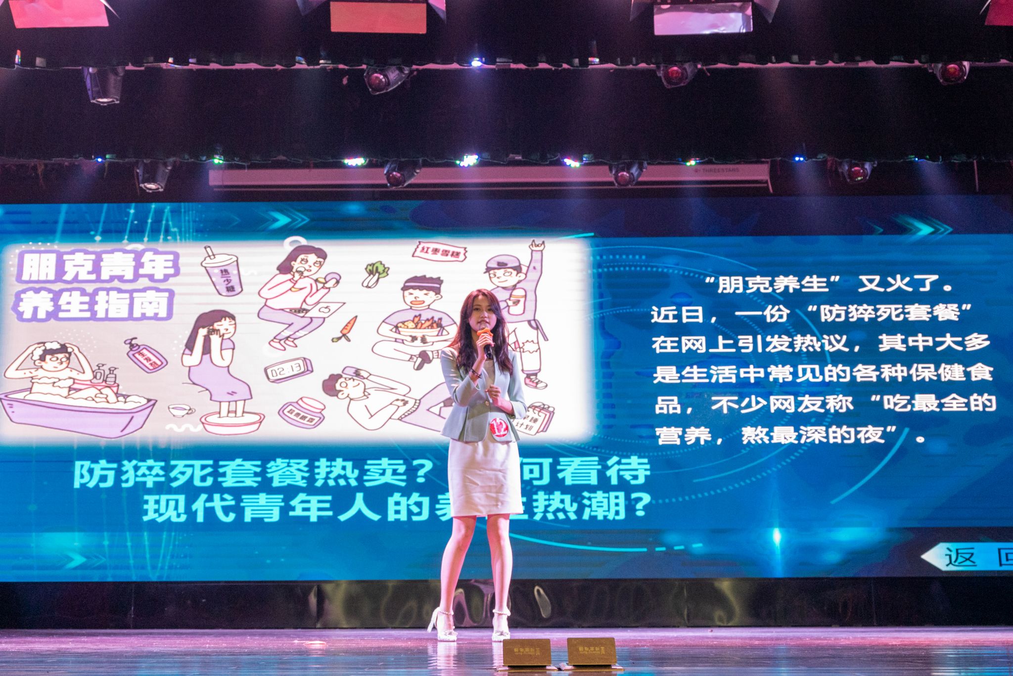 经过初赛与复赛两轮激烈的角逐,最终有12位选手脱颖而出登上决赛的舞台。决赛设置有“初来乍到,娓娓道来”模拟主持、“联动青春,与你同行”搭档主持与“主持现在,把握未来”即兴评述三个环节。