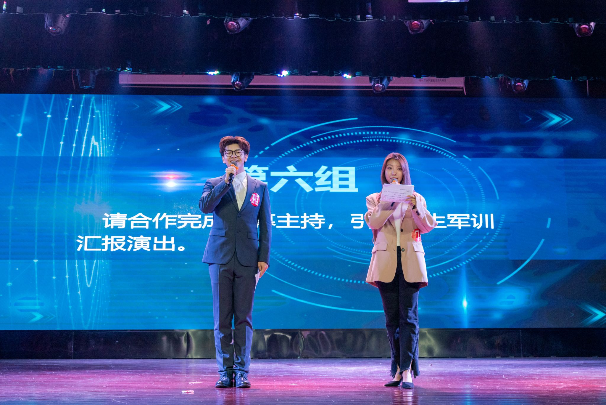 的张馨蕊主持新生军训汇报演出,对白极具感染力,观众们似乎又回到那烈日炎炎下坚持训练的阵列之中。各组选手间紧密配合,聚焦热点,用胸怀和格局传递了南农青年之声,让观众看到我辈在新时代的无限可能。