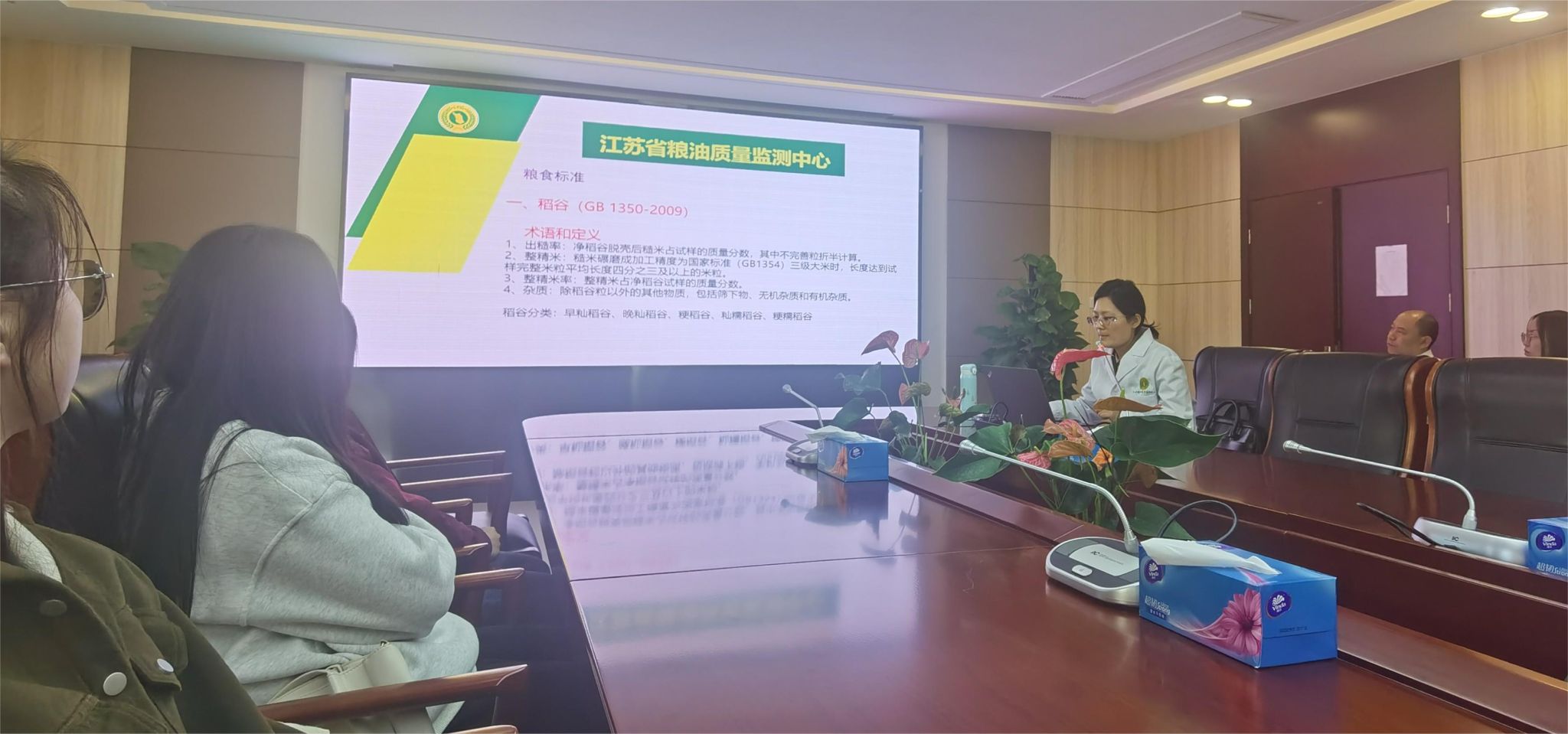 随后,参观师生在会议室听取了关于省粮油监测中心建设成就的主题汇报,并就高质量人才培养、创新创业校企联培达成诸多共识。最后,双方合影结束了生产实习探访。