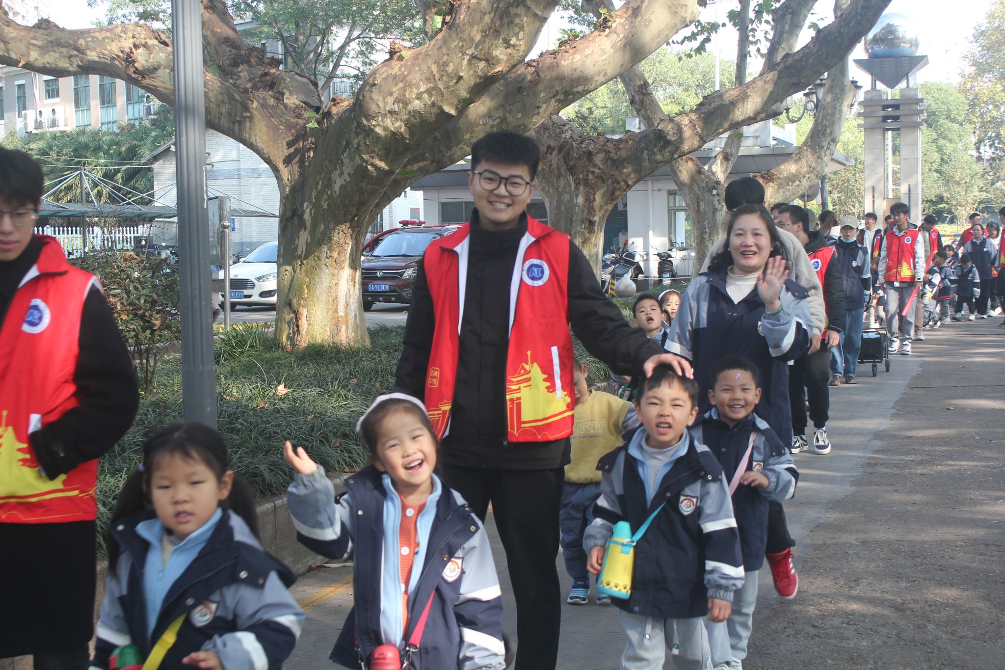 在老师和青协志愿者的组织下,小朋友们排着整齐的队伍走进南京农业大学浦口校区。志愿者和孩子们“大手牵小手”踏着落叶,感受秋天的宁静与充实,体悟自然带给我们的美好风光。在游览校园的过程中,小朋友们和哥哥姐姐一起捡落叶,将树叶拼凑成一幅幅画卷,留住秋天的回忆。