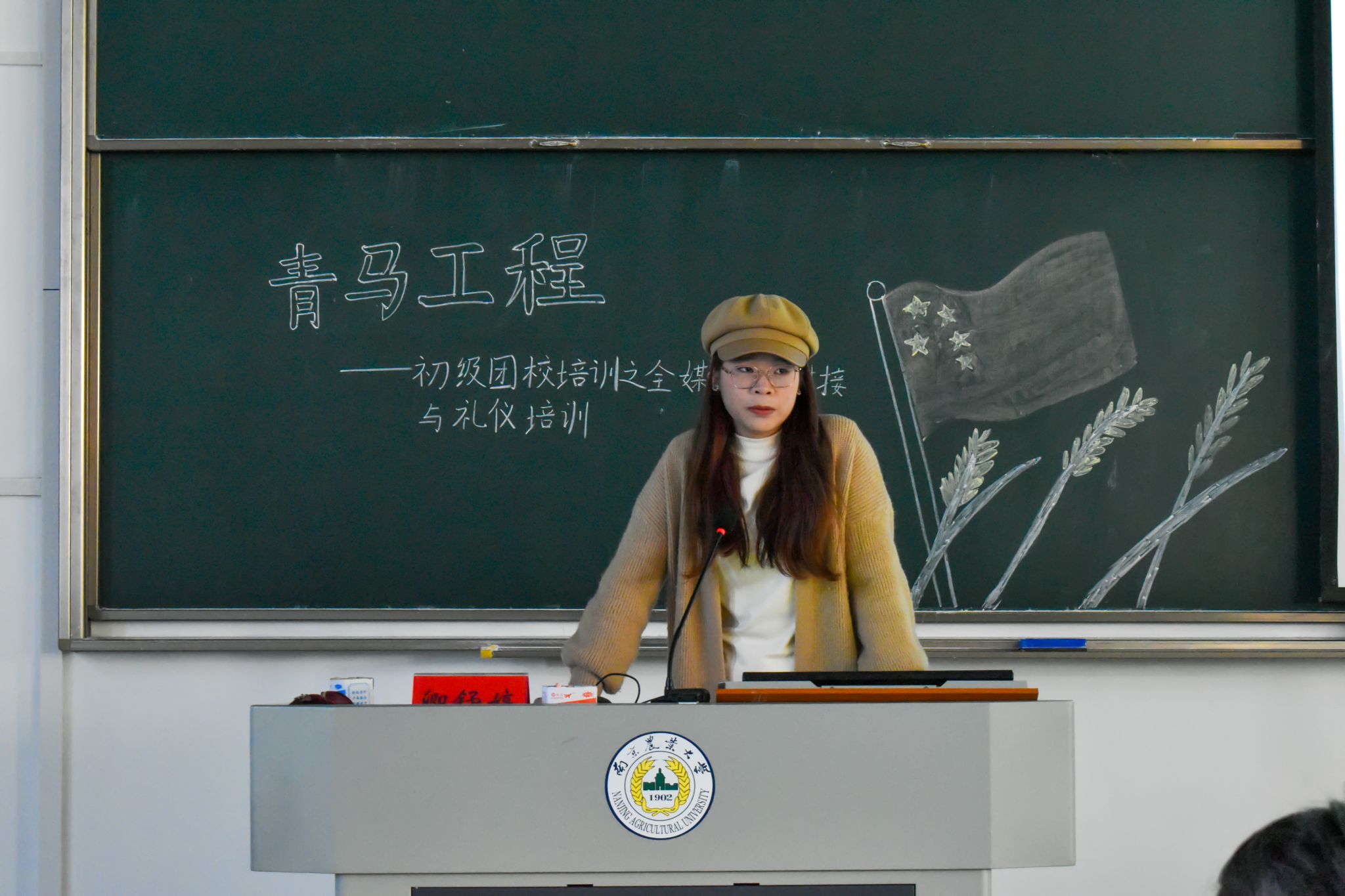 本场培训分为三个流程。卿舒婷首先进行了学院全媒体运营、投稿等流程介绍,阐明工作机制与对接流程,以便全媒体中心更全面、准确传播信息,树立学院良好形象。紧接着,由甄亚乐进行社交礼仪培训。甄亚乐指出,礼仪是各部门工作中必不可少的,拥有好的礼仪能够使同学们在学习工作中做到知行合一、担当有为,从而提高工作素质与能力。此外,甄亚乐还面向同学们进行互动问答,为其提供必要的支持和指导。最后,进行本次初级团校培训班结业考核,本次考核成绩将计入期末部门量化评比中,以考促学,推进培训知识入脑入心。