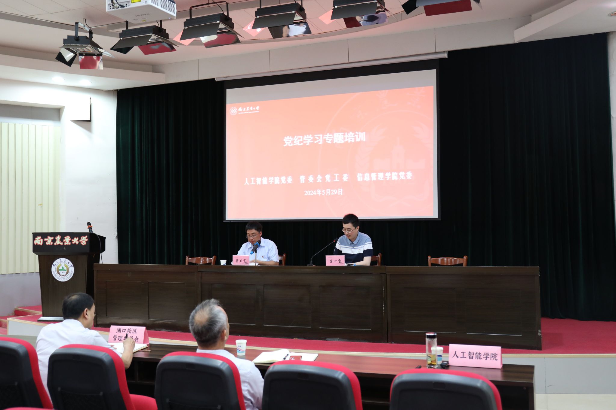 党委联合浦口校区管委会党工委、信息管理学院党委,共同举办党纪学习专题培训,校监察处副处长(主持工作)、纪委办公室副主任(监督检查室主任)梁立宽应邀作专题辅导报告。三家单位领导班子成员、教职工党员参加培训。培训会由永利皇宫赌场