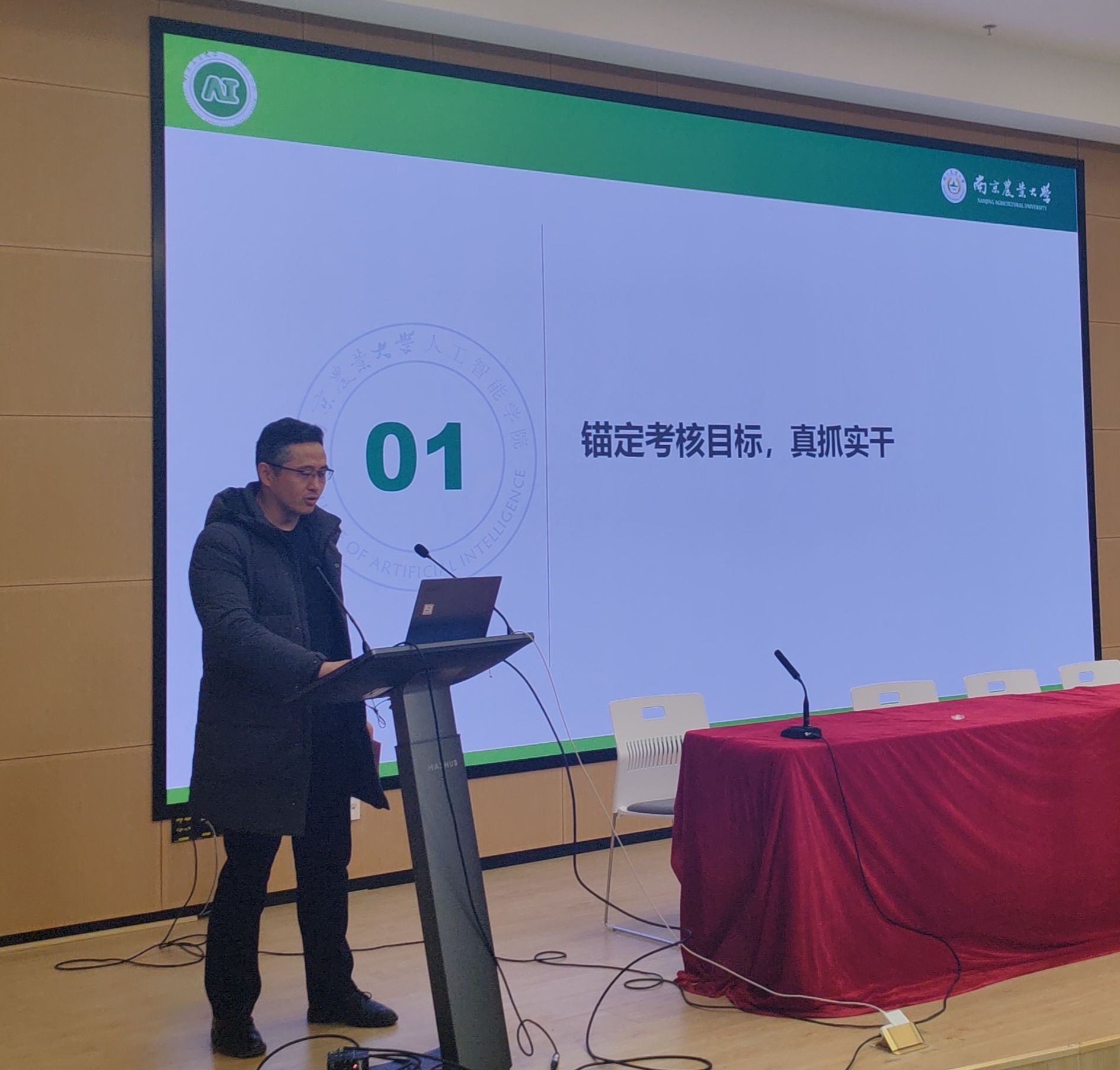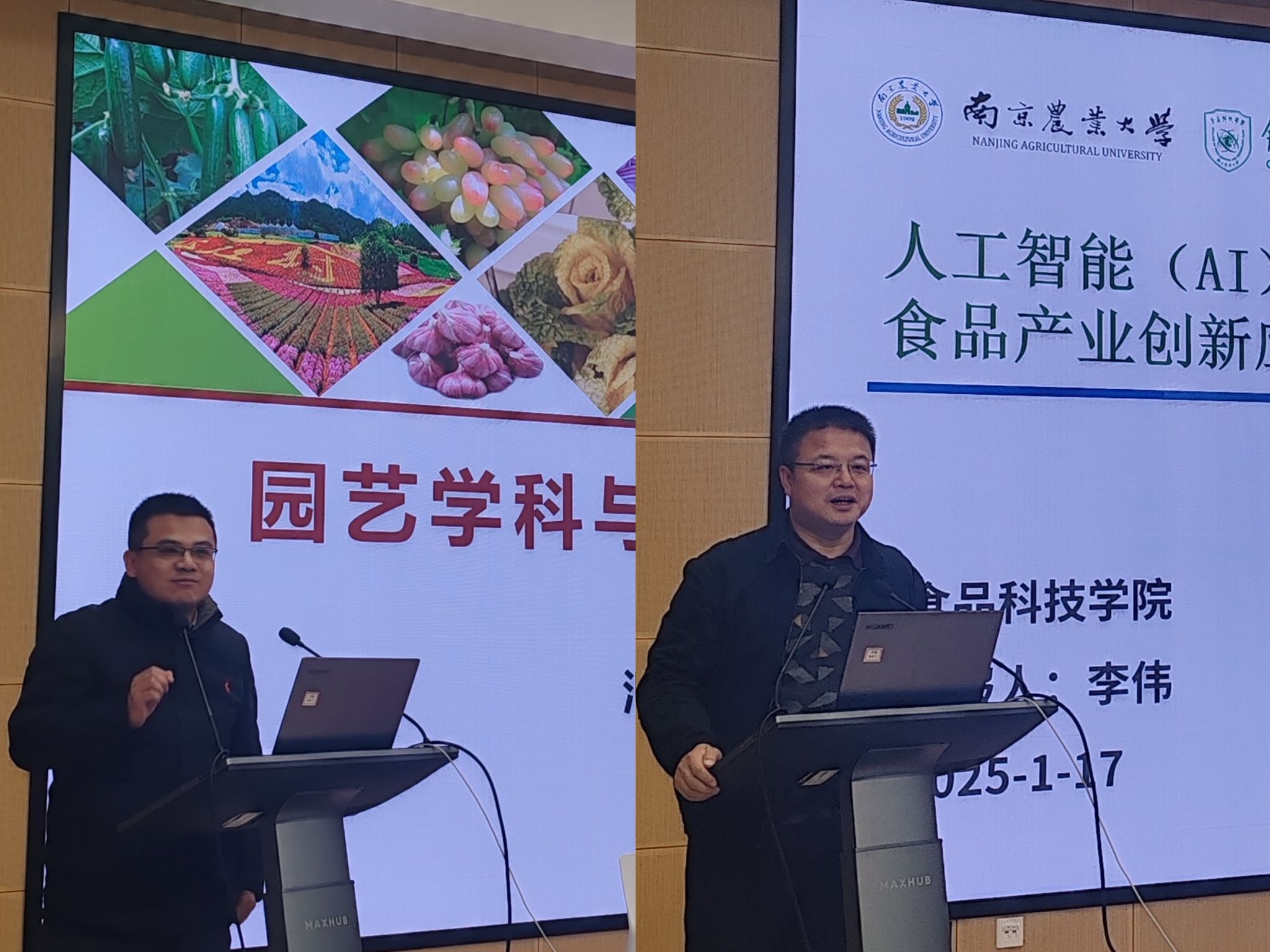 上午主题报告环节由院党委书田永超教授主持,校教务处处长曹爱忠、科研院院长周国栋、社会合作处副处长金鹏、园艺学院副院长束胜、食品科技学院副院长李伟等领导专家受邀参加。曹爱忠处长高度评价了学院在人才培养和教学改革等方面所做出的贡献,同时也希望学院全体教师能够深刻把握“时”与“势”,进一步提升专业办学实力。周国栋院长对学院在科研方面取得的成果表示充分肯定,并对教师项目申报做出了细致指导,寄语学院在新的一年里能继续加强科研创新能力提升。金鹏副处长、束胜副院长、李伟副院长也分别围绕学校社会合作情况、园艺学院和食品学院对AI研究需求做了主题发言。