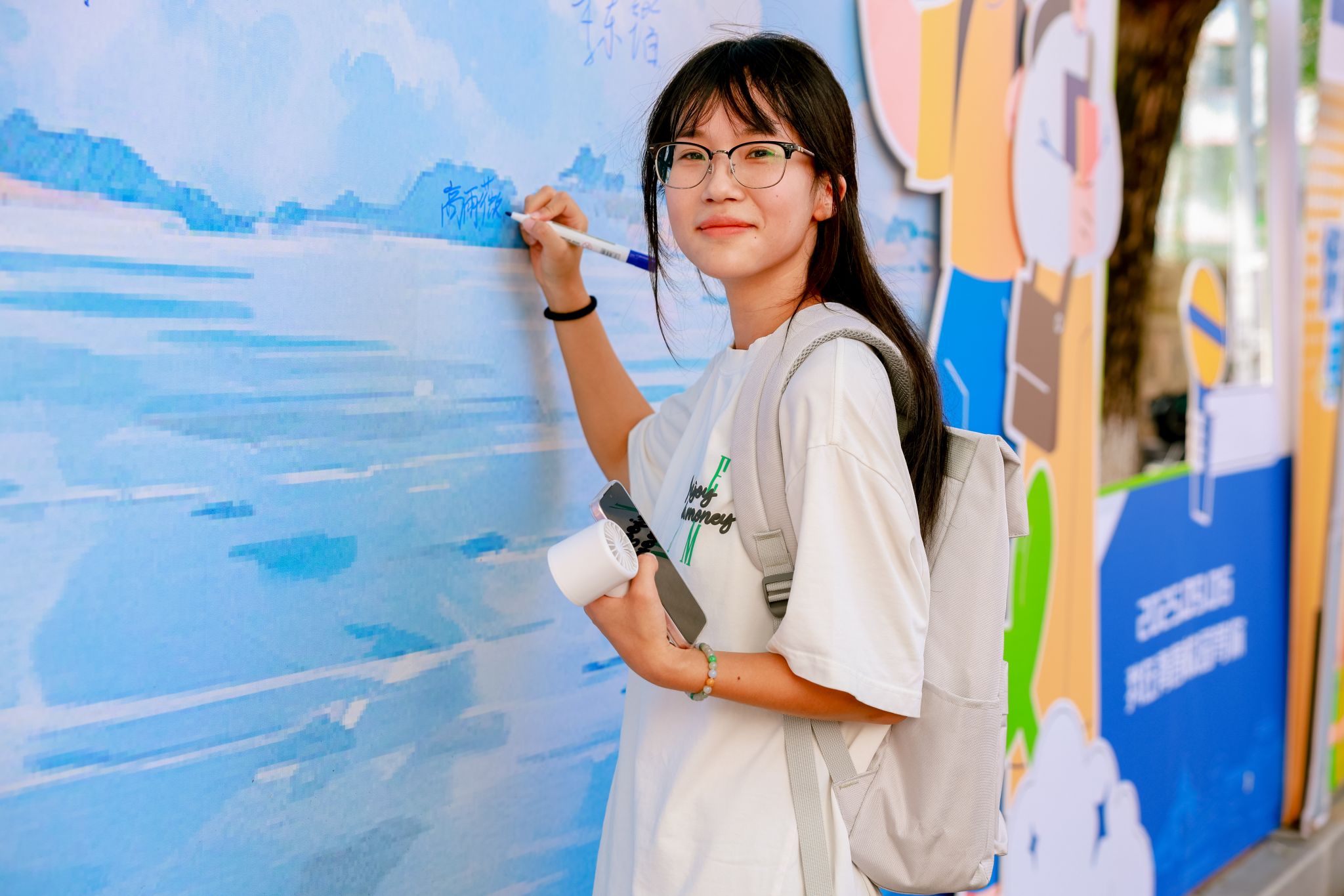 开学啦”立体字样熠熠生辉,“你好,新同学”的暖心标语与新生们的签名交相辉映,定格下他们与学院的初见之喜。我们相信,与学院的第一次相遇值得被郑重收藏:今天为你定格的初见瞬间,将由学院悉心留存四年。待毕业季来临,学院将在滨江校区为你复刻此刻的光影,用两张跨越时光的照片,串联起从青涩入学到从容毕业的成长轨迹。