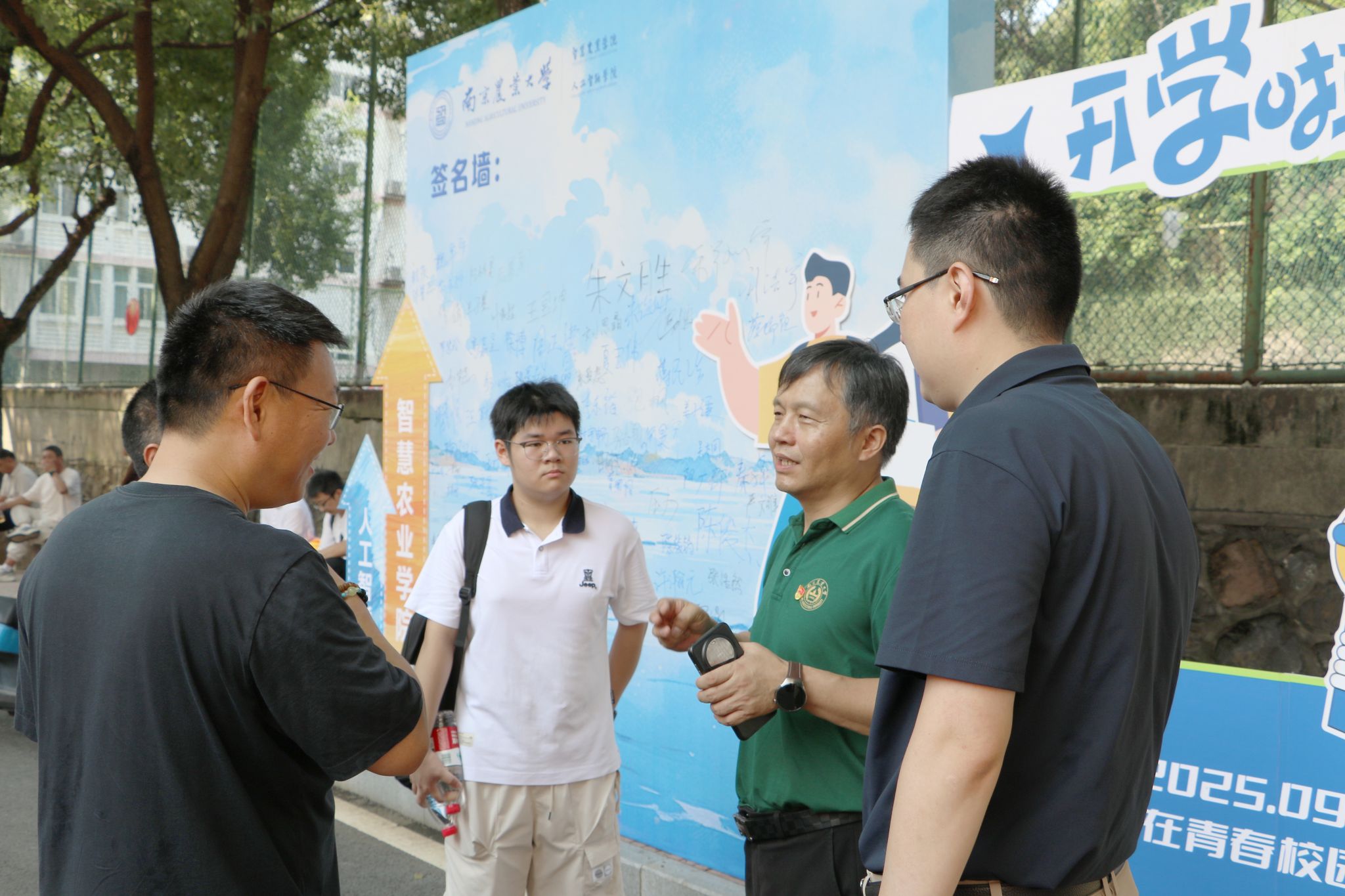 领导班子成员亲临迎新一线,与师生志愿者亲切交流,细致询问报到流程进展。在与新生及家长的交谈中,院党委书记李骅勉励新生:“智慧农业是科技兴农的前沿阵地,希望你们以‘诚朴勤仁’的校训精神为指引,在交叉学科领域勇闯创新之路。”常务副院长田永超则结合学科发展前景,向新生介绍了学院专业的特色优势,鼓励大家立大志、明大德、成大才、担大任。