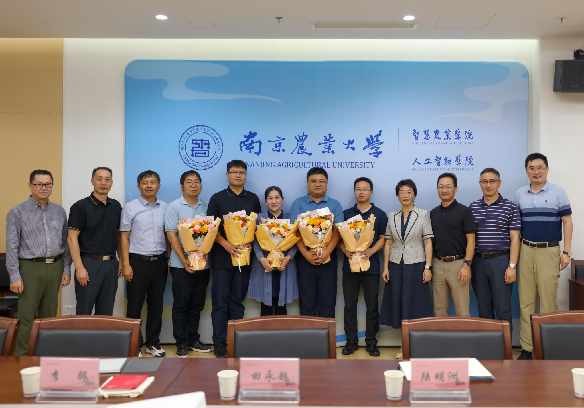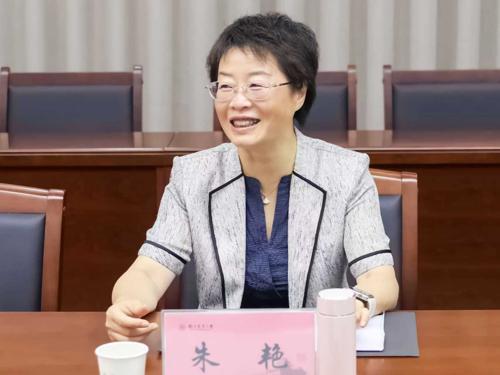 朱艳为教师代表逐一送上鲜花,并代表学校向学院全体教职工致以节日的问候。
