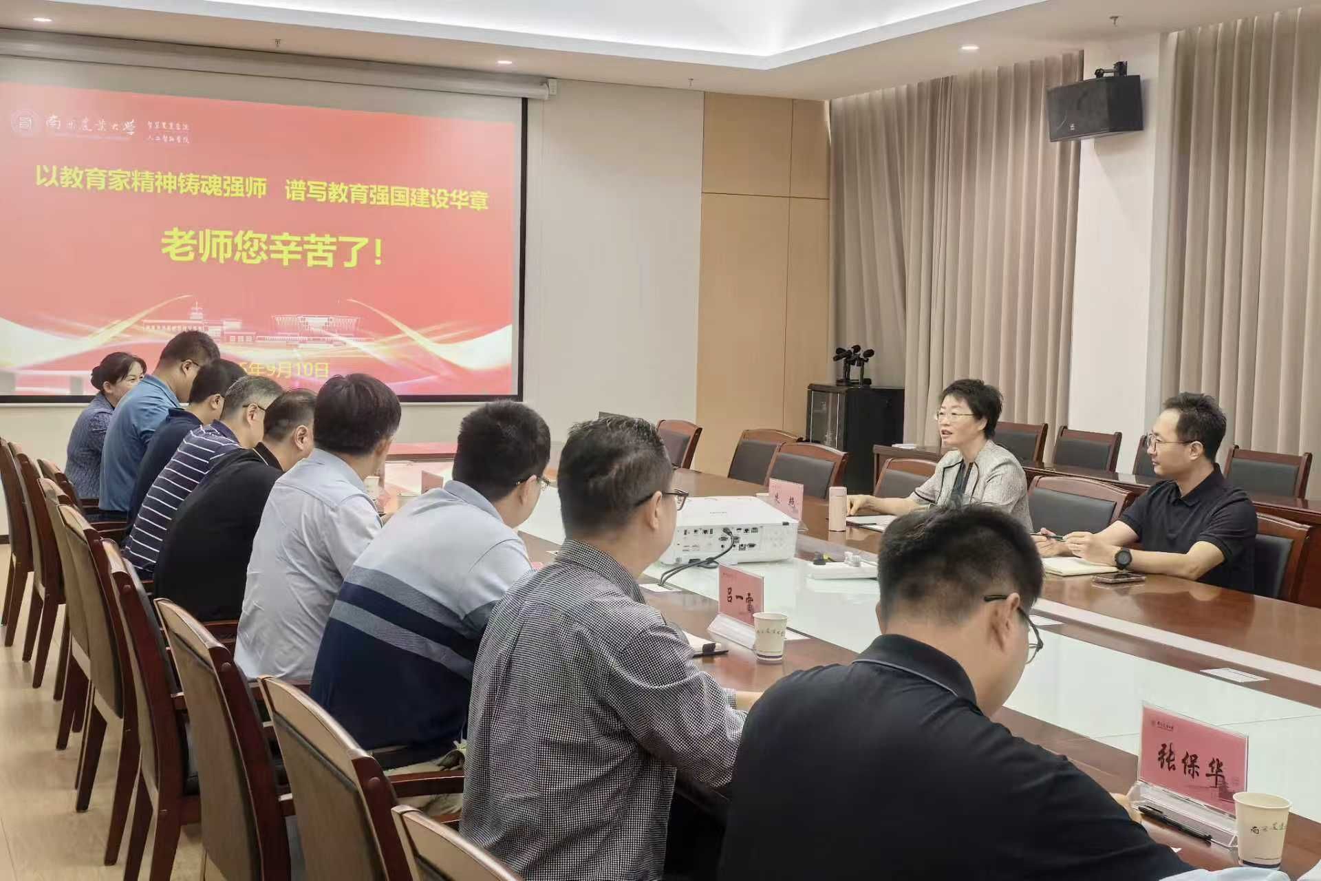 ,走访慰问学院一线教师,并与教师代表进行了座谈交流。宣传部副部长吴峰、学院党委书记李骅、常务副院长田永超、党委副书记吕一雷、副院长陆明洲、舒磊陪同慰问;教师代表张保华、肖浏骏、傅秀清、钱燕、严家兴参加座谈。