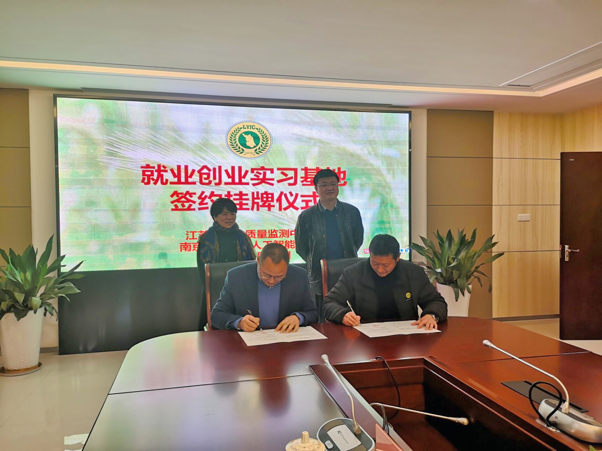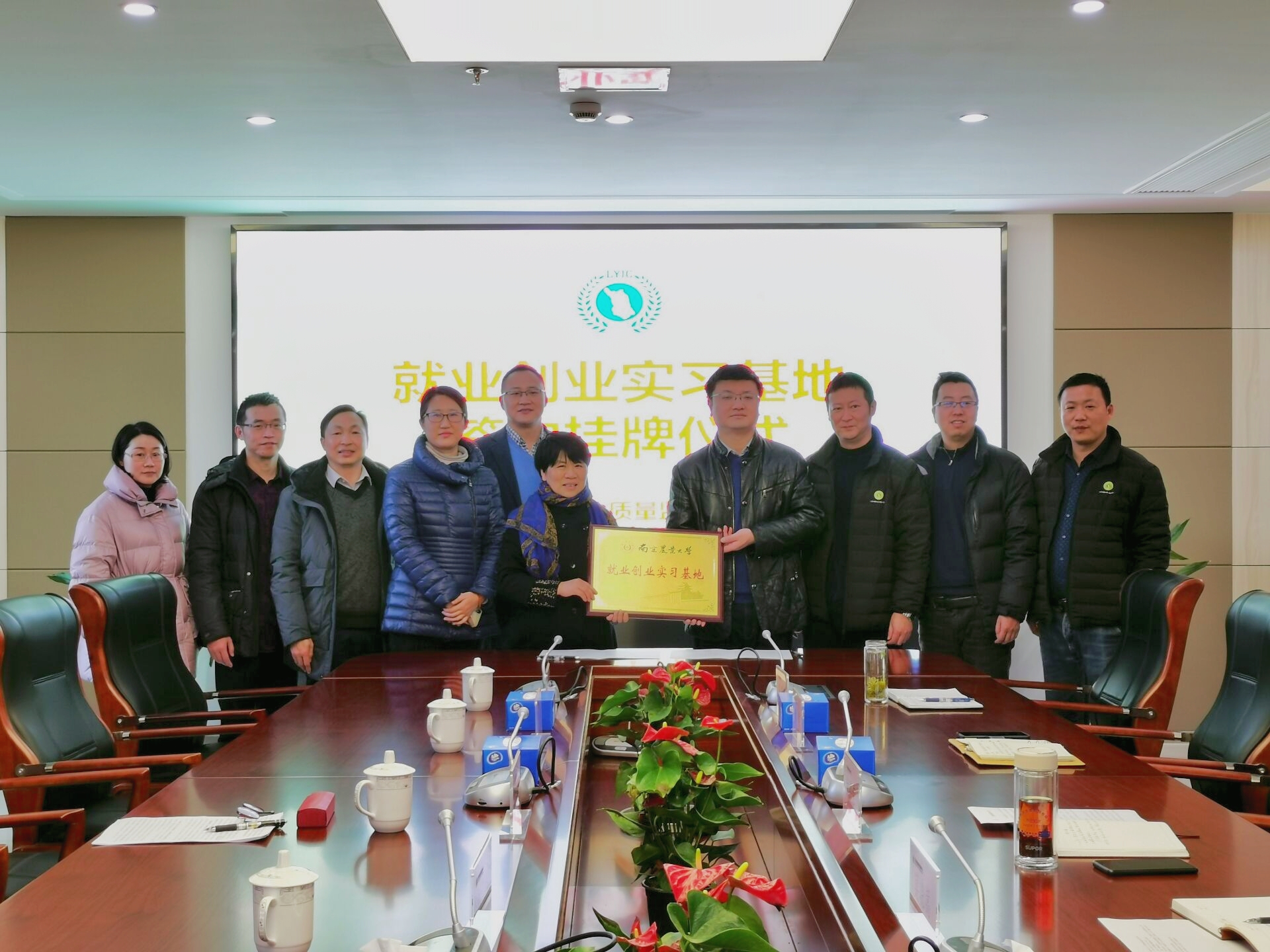 会后,卢伟、莫晓嵩代表双方签订了就业创业实习共建协议,沈明霞、黄熙荣代表校企双方共同为南京农业大学“就业创业实习基地”揭牌。