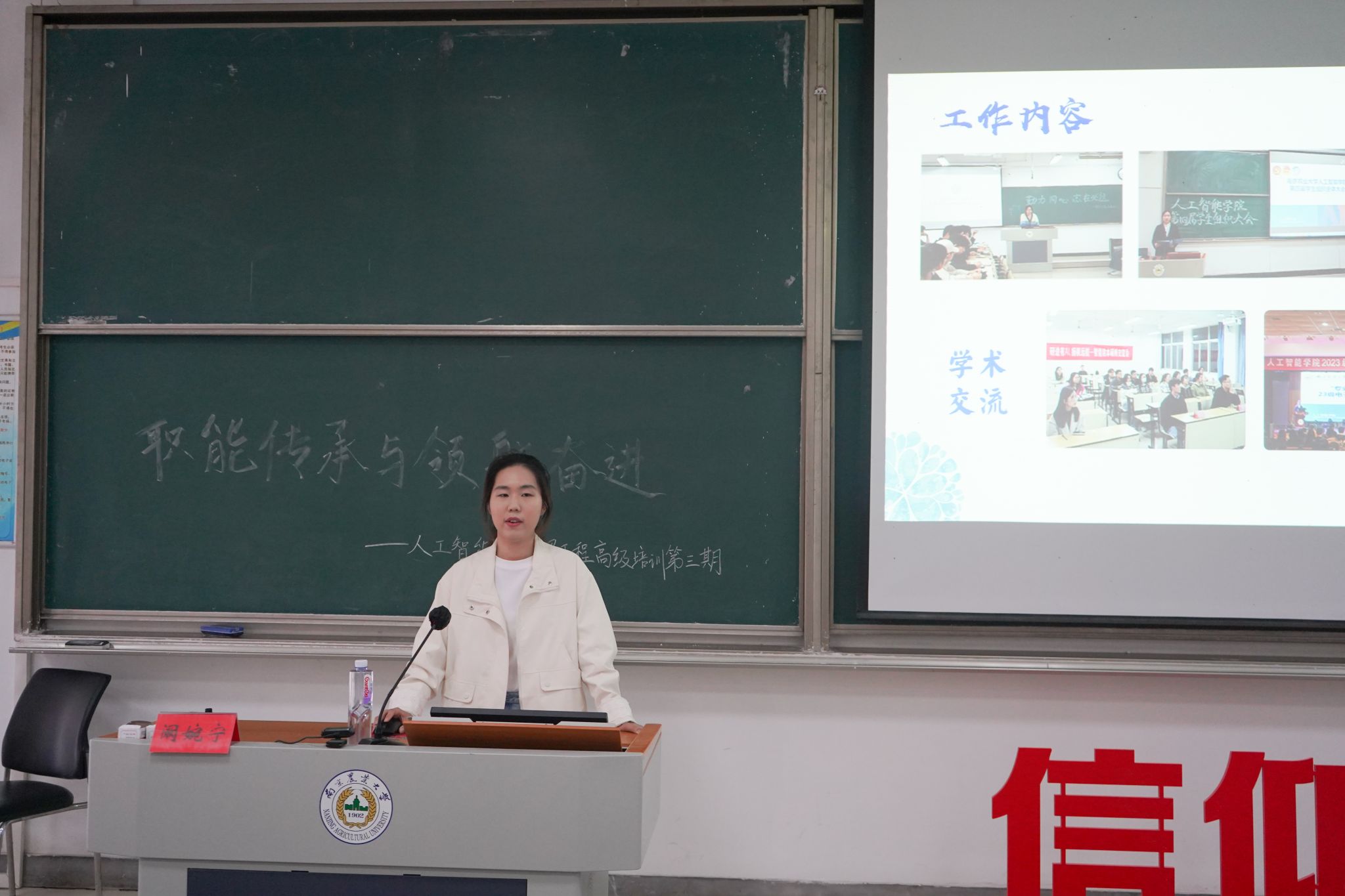 首先聂欣老师以“‘禾’伙人成长记——开启学生干部的大学'支线副本’”为题,通过生动有趣的游戏化比喻,将学生工作比作“支线任务”,深入浅出地讲解了时间管理、压力调节等实用技巧;紧接着,阚婉宁学姐立足工作实际,系统梳理了活动策划、团队协作和应急处理等标准化工作流程,以详实的案例分享和实操演练,为学生干部提供了具体的工作指引。