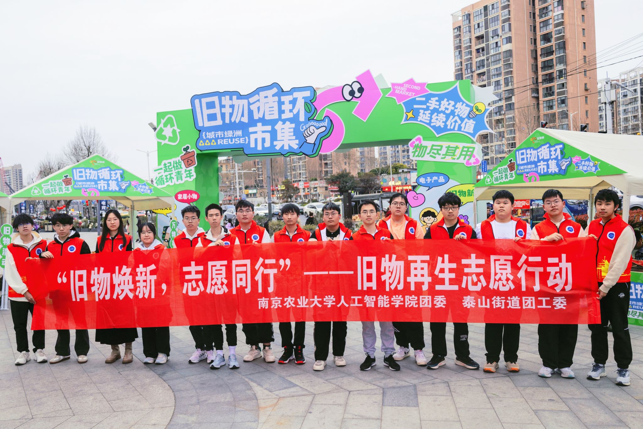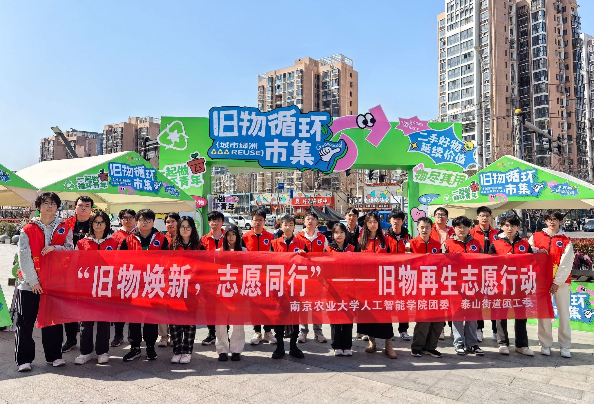 团委联合泰山街道团工委在金象城商业广场创新打造“旧物焕新 志愿同行”循环市集。活动通过搭建绿色生活实践平台,吸引300余位市民参与,实现百余件闲置物品的循环利用,让可持续发展理念在互动体验中深入人心。