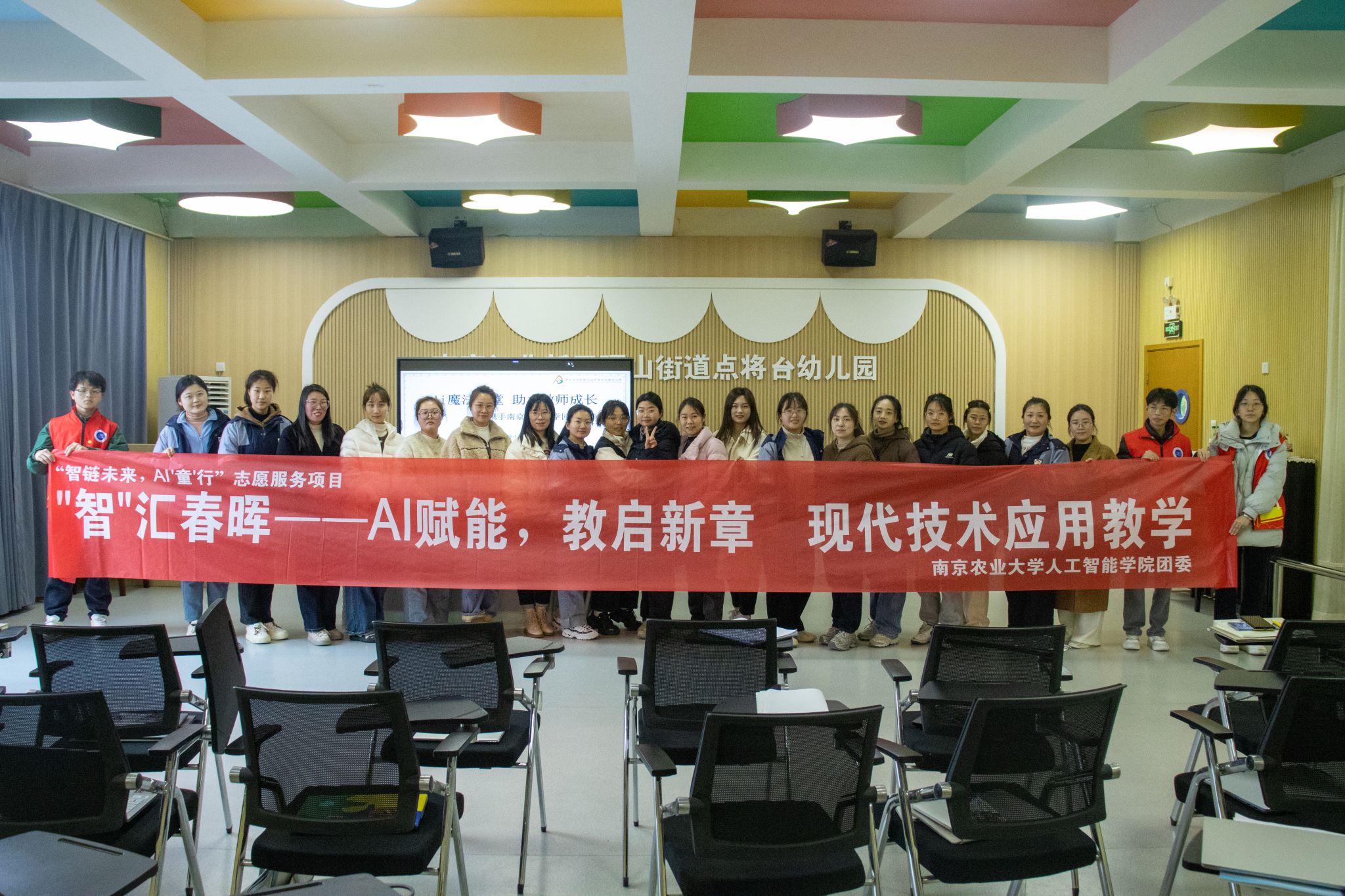 3月13日,南京农业大学永利皇宫赌场 开展“智汇春晖——AI赋能,教启新章”教师专项培训活动,标志着“智链未来,AI‘童’行”志愿服务项目实现服务对象由儿童向教育者的战略升级。本次活动联合南京市点将台幼儿园,聚焦人工智能技术在教学场景的深度应用,通过系统性培训20余名幼教工作者,助力传统教育模式向智慧教育转型。