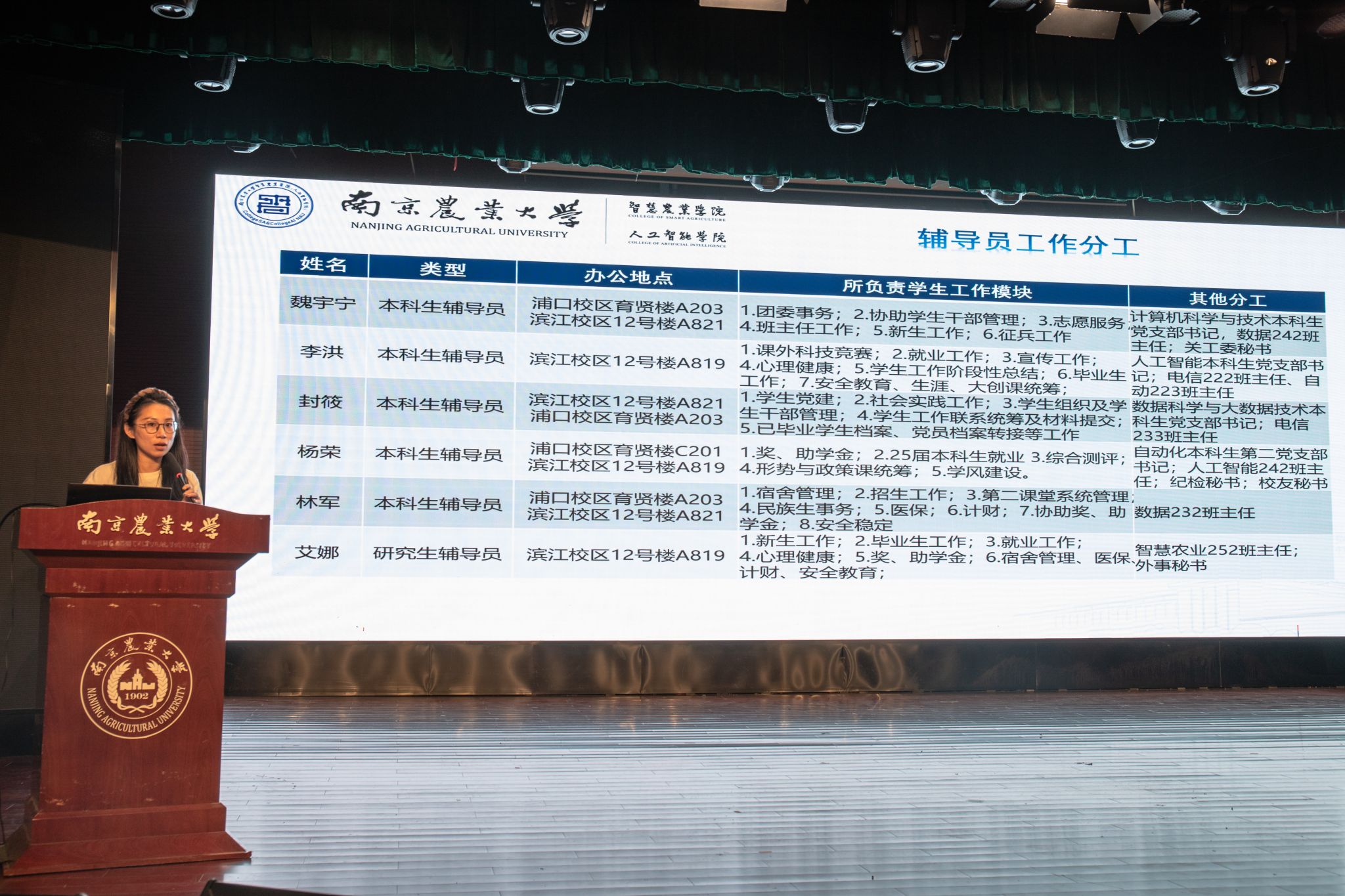 本科生辅导员魏宇宁介绍了学生工作分工及日常管理服务,帮助新生更好地适应大学学习与生活。