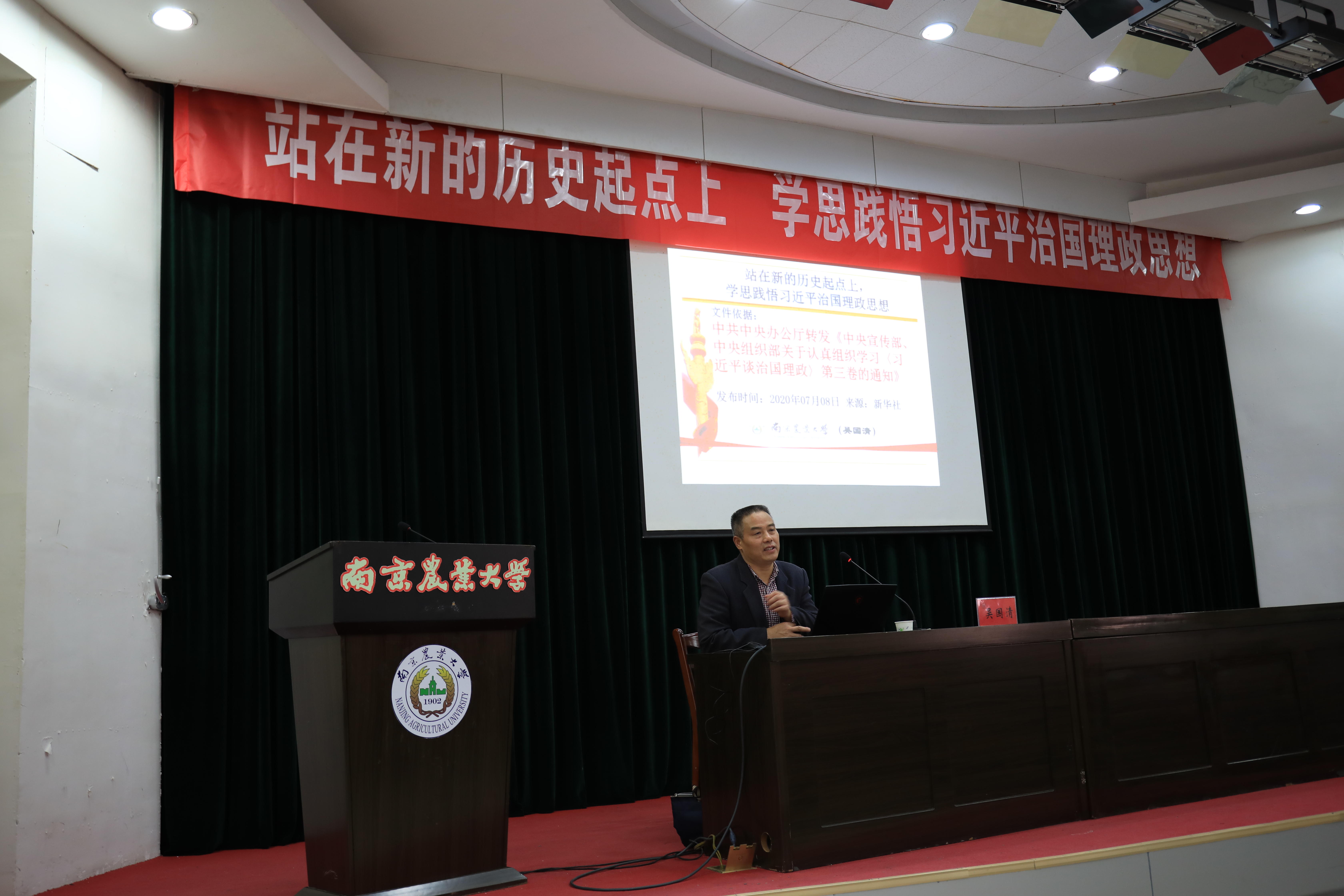 党委在浦口校区图书馆报告厅举办《习近平谈治国理政》(第三卷)专题学习报告会。学院全体教职工及部分学生干部参会学习,报告会由学院党委副书记(主持工作)沈明霞主持。