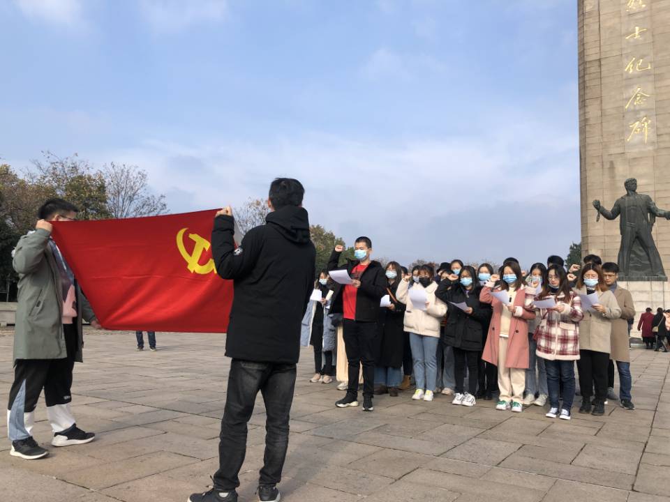 11月29日,新发展党员前往雨花台烈士陵园开展了一场“传承红色基因”的党史党性教育活动。在烈士纪念碑下,新发展党员们重温入党誓词,表达对我党的绝对忠诚,并朗诵纪念雨花台烈士诗歌,表达对英勇牺牲的革命先烈的无限缅怀。