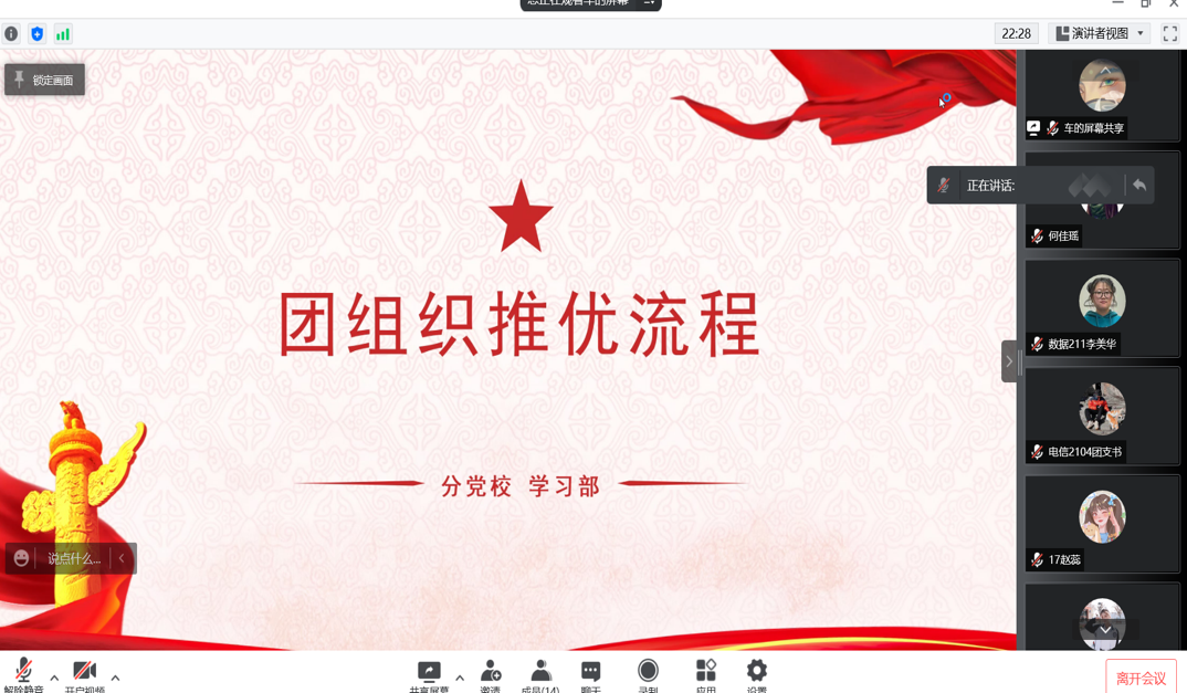 为确保团组织推优工作顺利开展,3月16日下午,永利皇宫赌场 分党校面向各班团支书开展团组织推优工作线上专题培训。