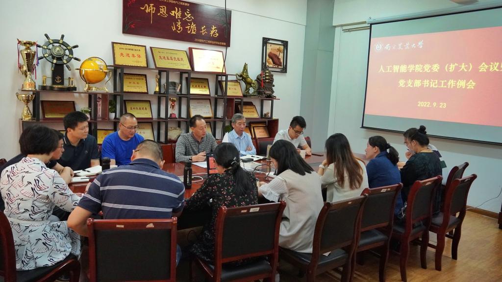 党委在浦口校区育贤楼B311召开党委(扩大)会议暨党支部书记工作例会。会议由院党委书记田永超主持,党委委员,党支部书记、党务秘书、兼职组织员参会。院长徐焕良列席会议。