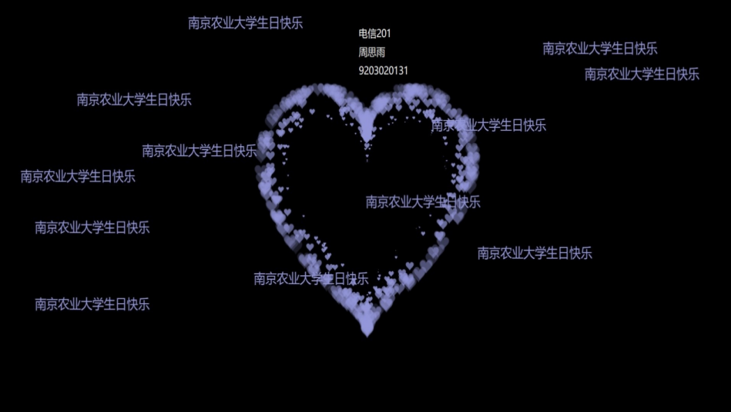 AI编码。在运行的代码中,有迸发而出的诚挚爱心、有骄阳似火的盛放玫瑰、还有轻巧灵活的爱心发射小人……一幅幅充满创意的作品令人叹为观止,既体现了参与者对所学知识的灵活运用,也包含着南农学子对学校的真诚祝福。