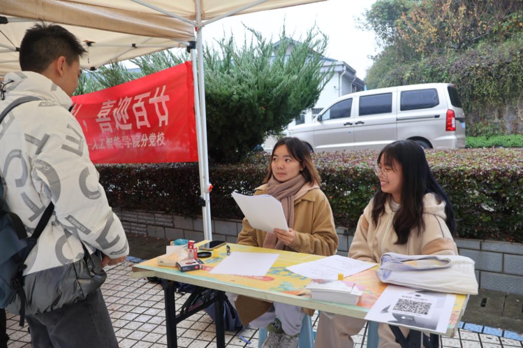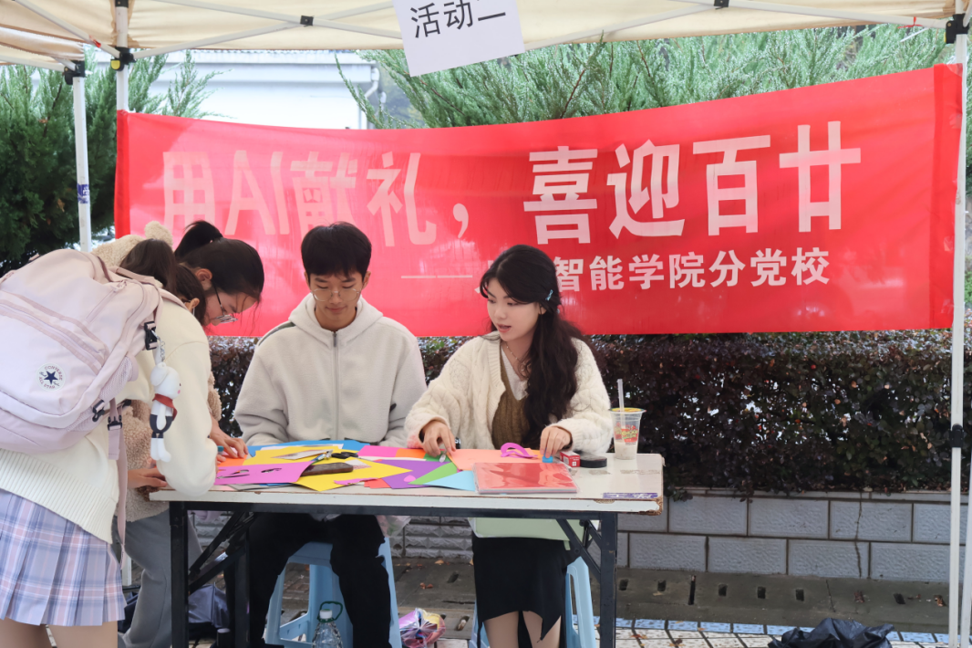 分党校在润泽园广场举办“用AI献礼,喜迎百廿”校庆主题系列活动。活动现场,“程序员”AI编码表达祝福、“剪刀手”指尖翻花尽显风采,“观众们”欣赏影音大饱耳福,“应答者”回答问题沉着自如。
