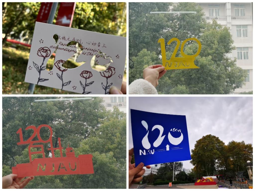 创意剪纸。一把剪刀,一张彩纸,同学们纷纷用创意剪纸的方式表达心中对百廿南农的祝福,剪刀在手指间穿梭,祝福在彩纸间洋溢,青春在南农校园间跳动;剪纸的图样,有的以字为主,有的以符号为主,还有的将二者搭配……欣赏案板上的剪纸作品,是一场视觉的盛宴。