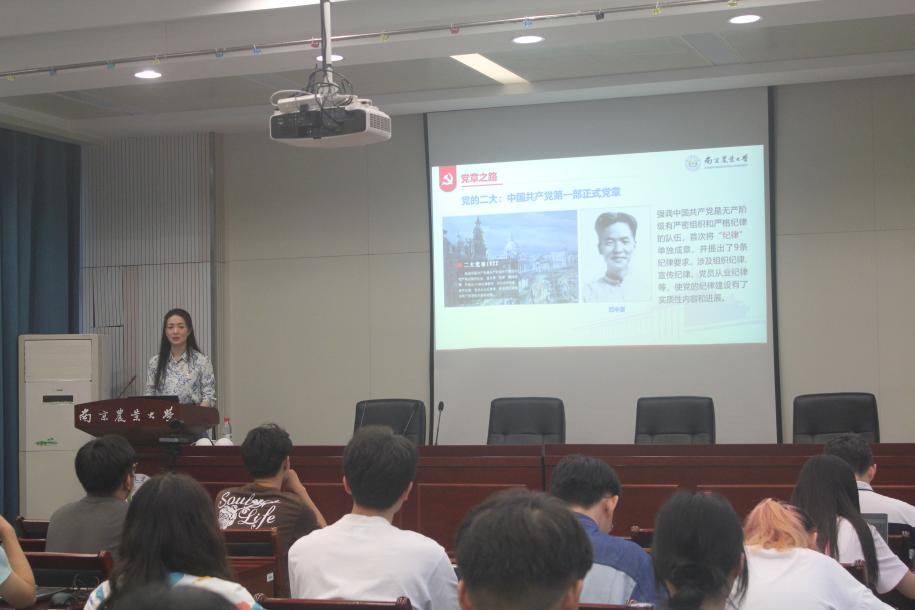 邀请马克思主义学院副教授陈蕊在育贤楼C502讲授 “永不褪色的信仰——党章之路”专题党课。院党委副书记吕一雷、副院长陆明洲,43名发展对象共同参与学习。