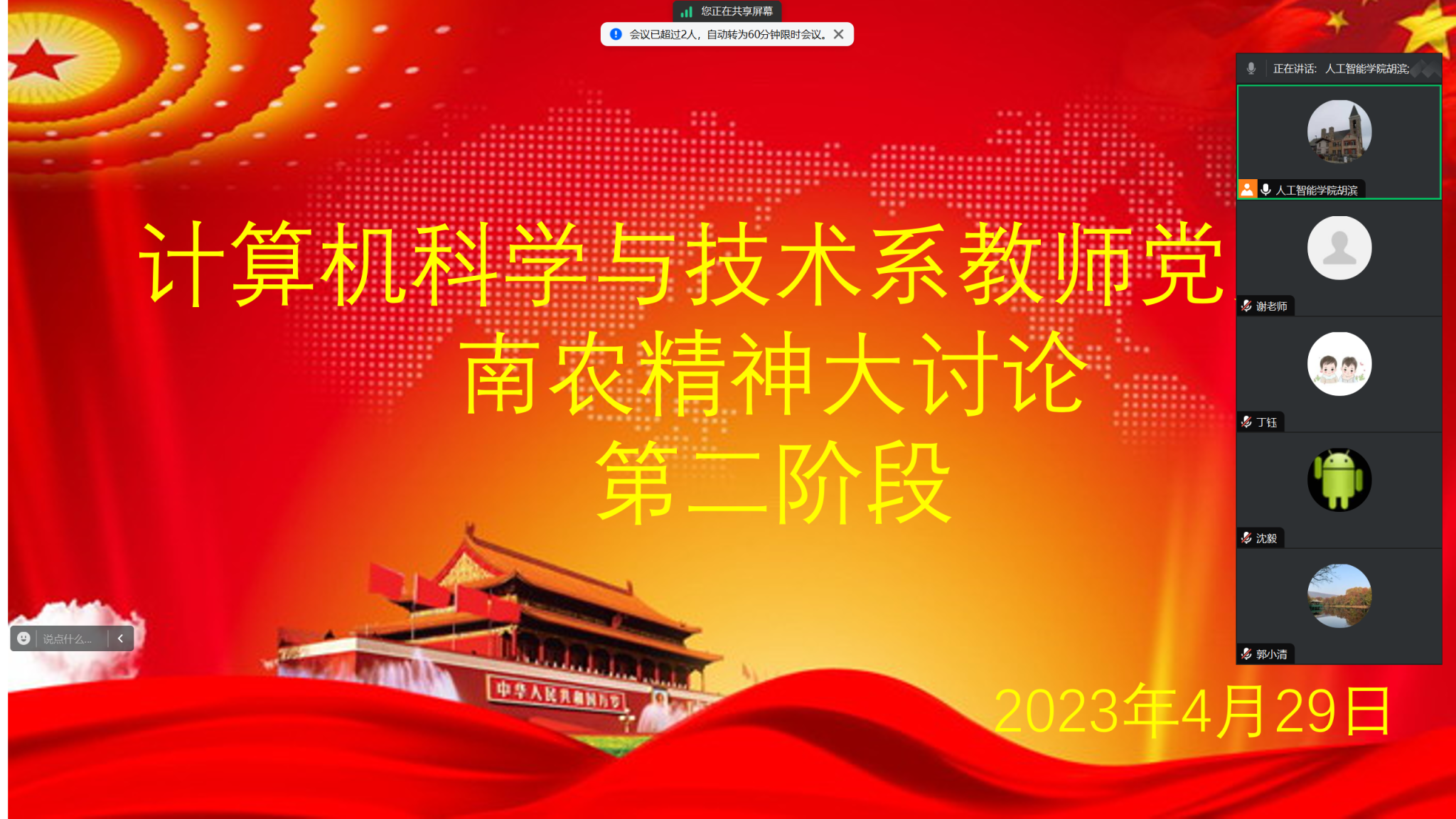 精神”等问题展开讨论。吕一雷充分肯定了本支部关于“新时代南农精神”大讨论活动第二阶段专题研讨的成效;同时,对支部的建设、支部党员的成长提出细致要求并给予美好期许。