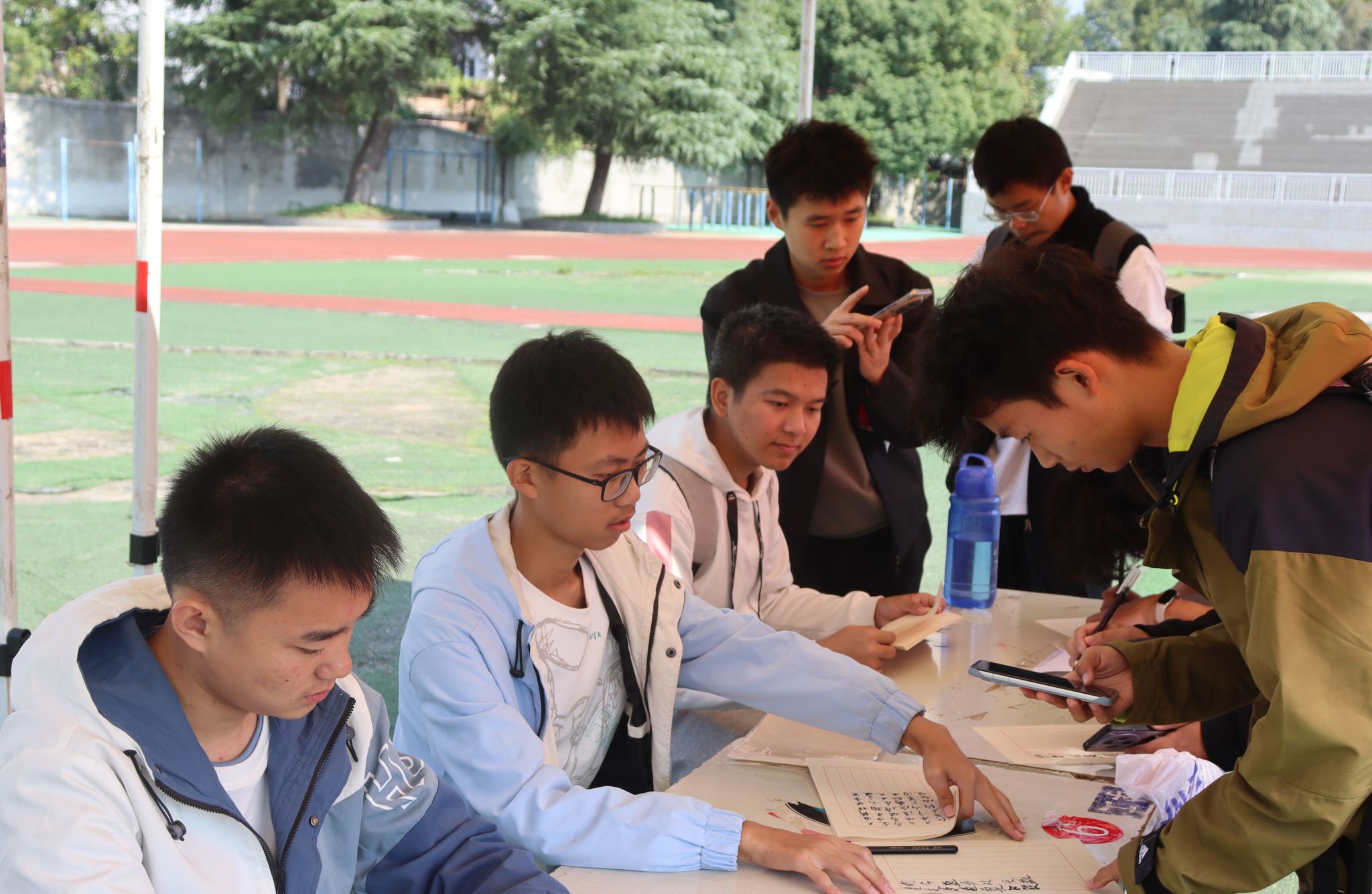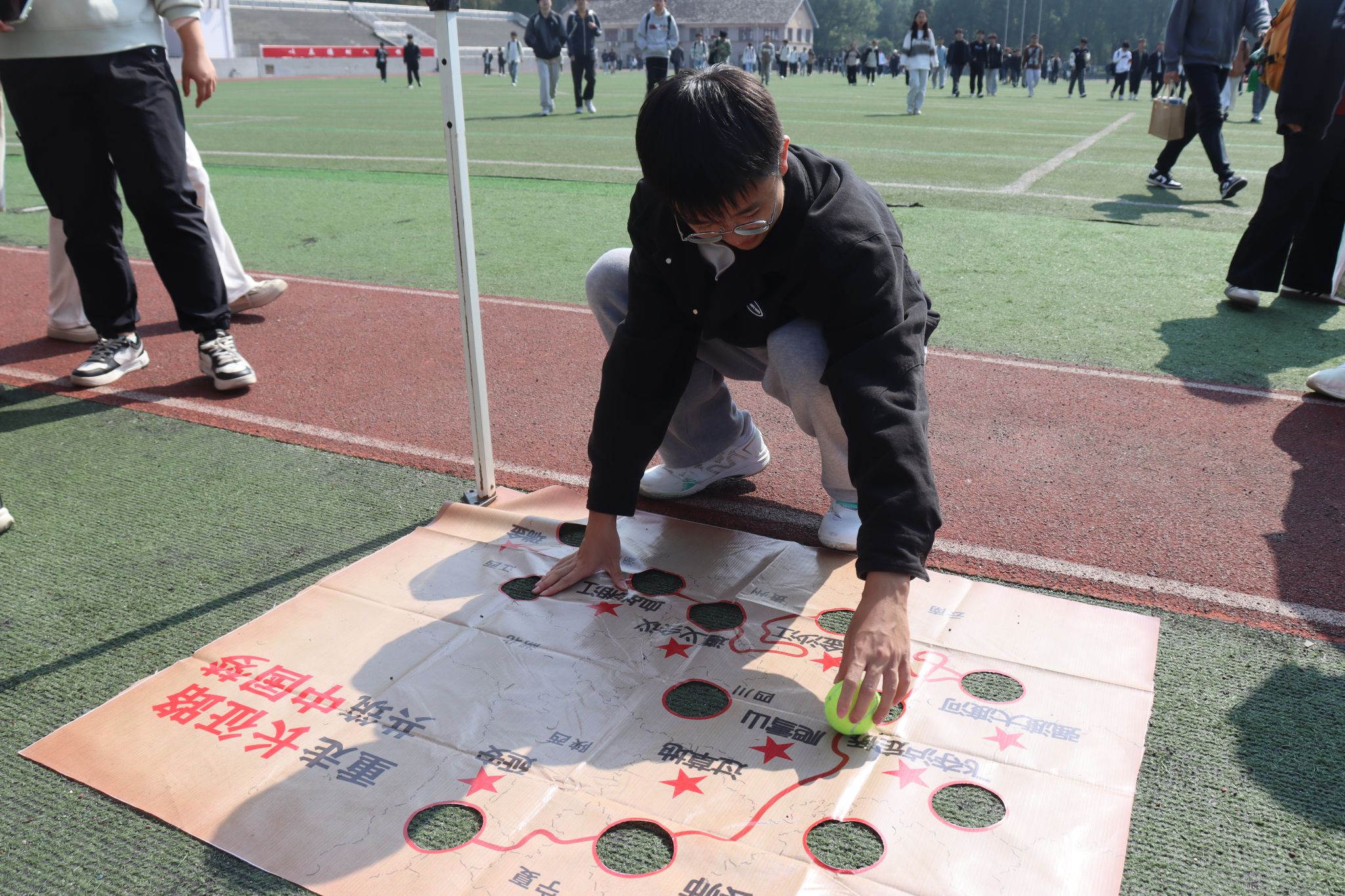在志愿者的引导下,同学们依次参与了“追忆长征之路”、“演绎红色旋律”、“书写长征诗词”三项活动,重温了长征之路,传承和弘扬了长征精神。同学们在分组协作中操控网球重走长征路,感受艰难险阻;伴随着红歌合唱,在崇敬氛围中理解长征精神;用擅长字体书写长征诗词,与革命先辈跨时空对话表达敬仰之情。同学们纷纷表示对长征精神有了更深刻的认识,得到了一次思想上的洗礼,要努力争做红色精神的传承者和传播者。