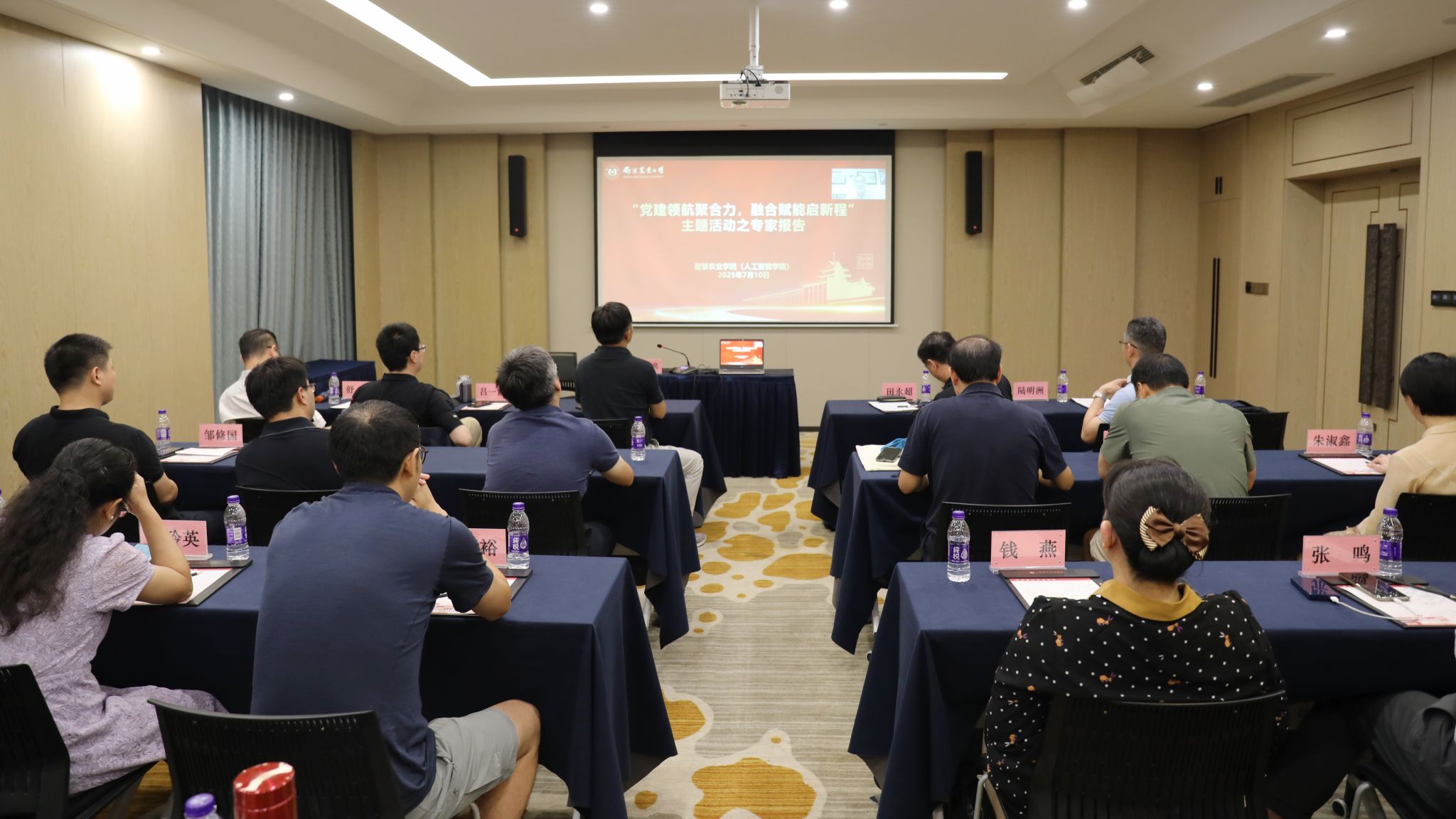 计算机科学与技术一级学科博士点申报提供指导方向。李道亮教授以“国家数字渔业创新中心学科与团队建设”为主题,从团队定位引入,通过所在团队研究方向凝练、人员结构优化、社会化服务等系统阐述了以战略引领驱动平台建设的思路,分享了团队为国家相关领域提供整体解决方案的目标和举措,并与参会教师就团队人才梯度化建设、社会服务与成果转化、国际化办学与合作等进行了交流讨论。