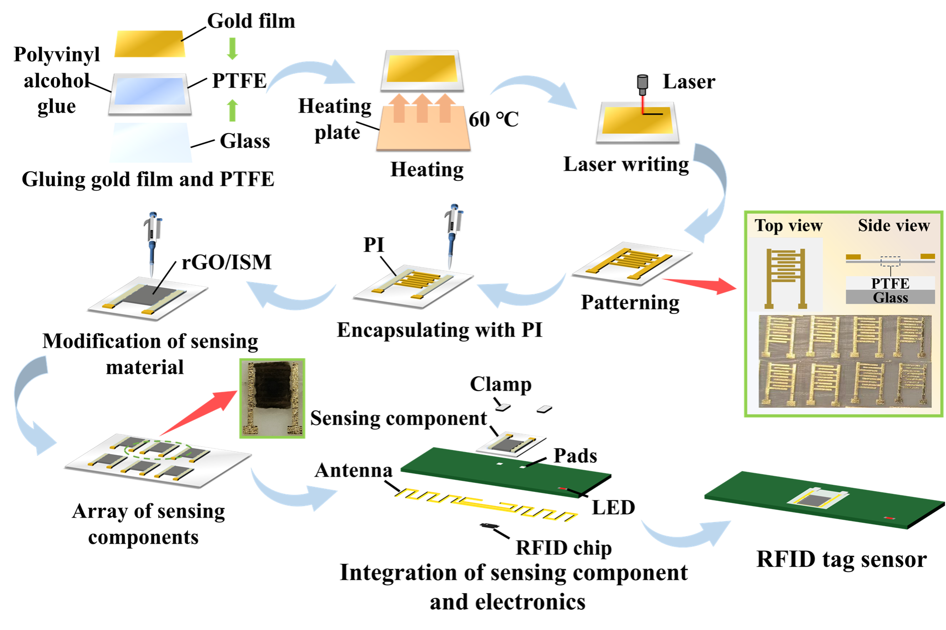 图2 无线无源RFID标签式传感器制造过程示意图