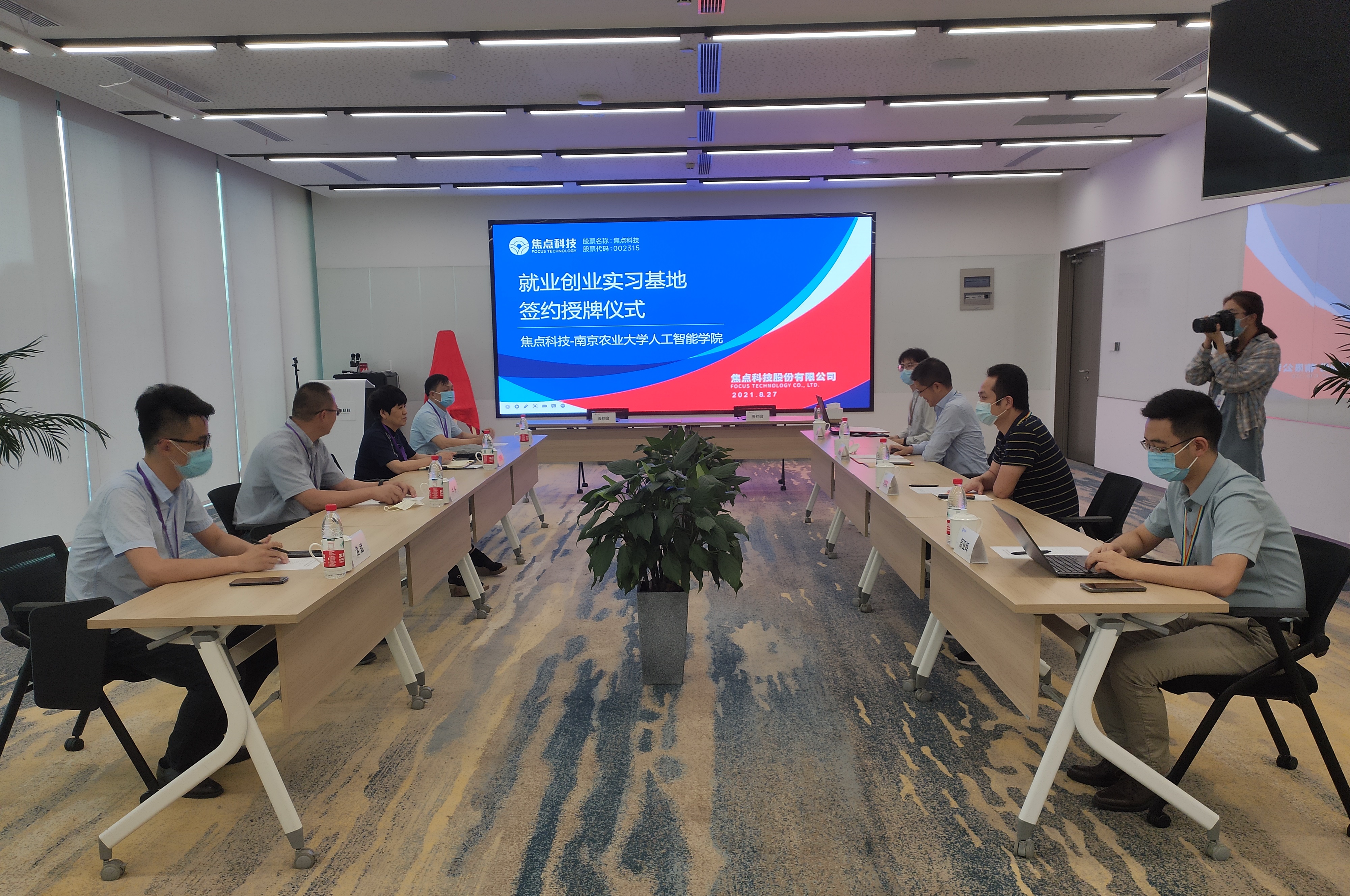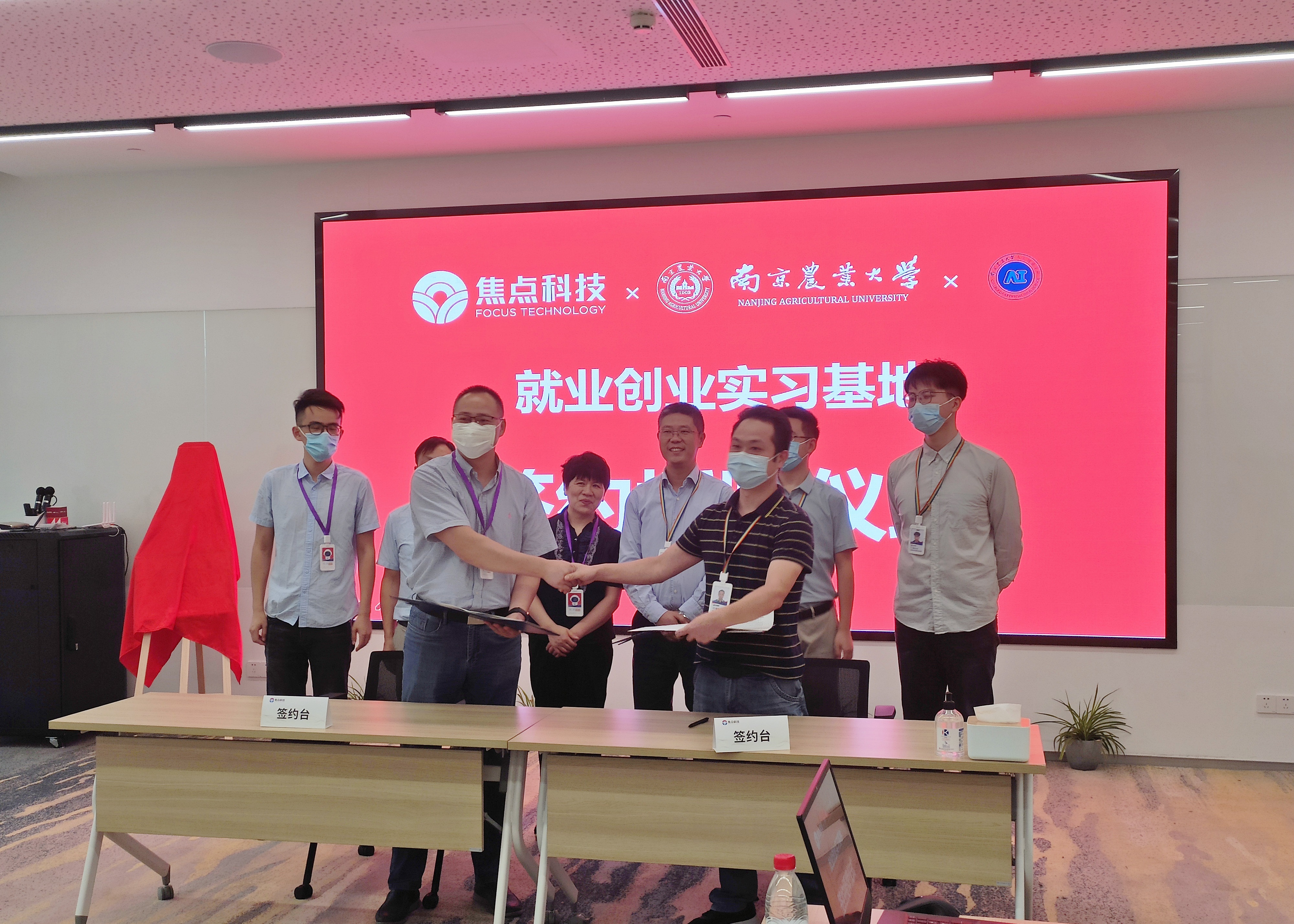 党委副书记(主持工作)沈明霞、党委副书记卢伟、电子信息系主任李林、学工办副主任湛斌、学生代表等一行6人回访焦点科技股份有限公司,双方签订就业创业实习共建协议,并举行南京农业大学“就业创业实习基地”揭牌仪式。公司高级副总裁兼首席技术官成俊杰、研发中心技术总监何学勇、人力资源组织与发展部负责人周亚辉、人力资源部校招项目经理丁茂林出席本次签约与授牌仪式。