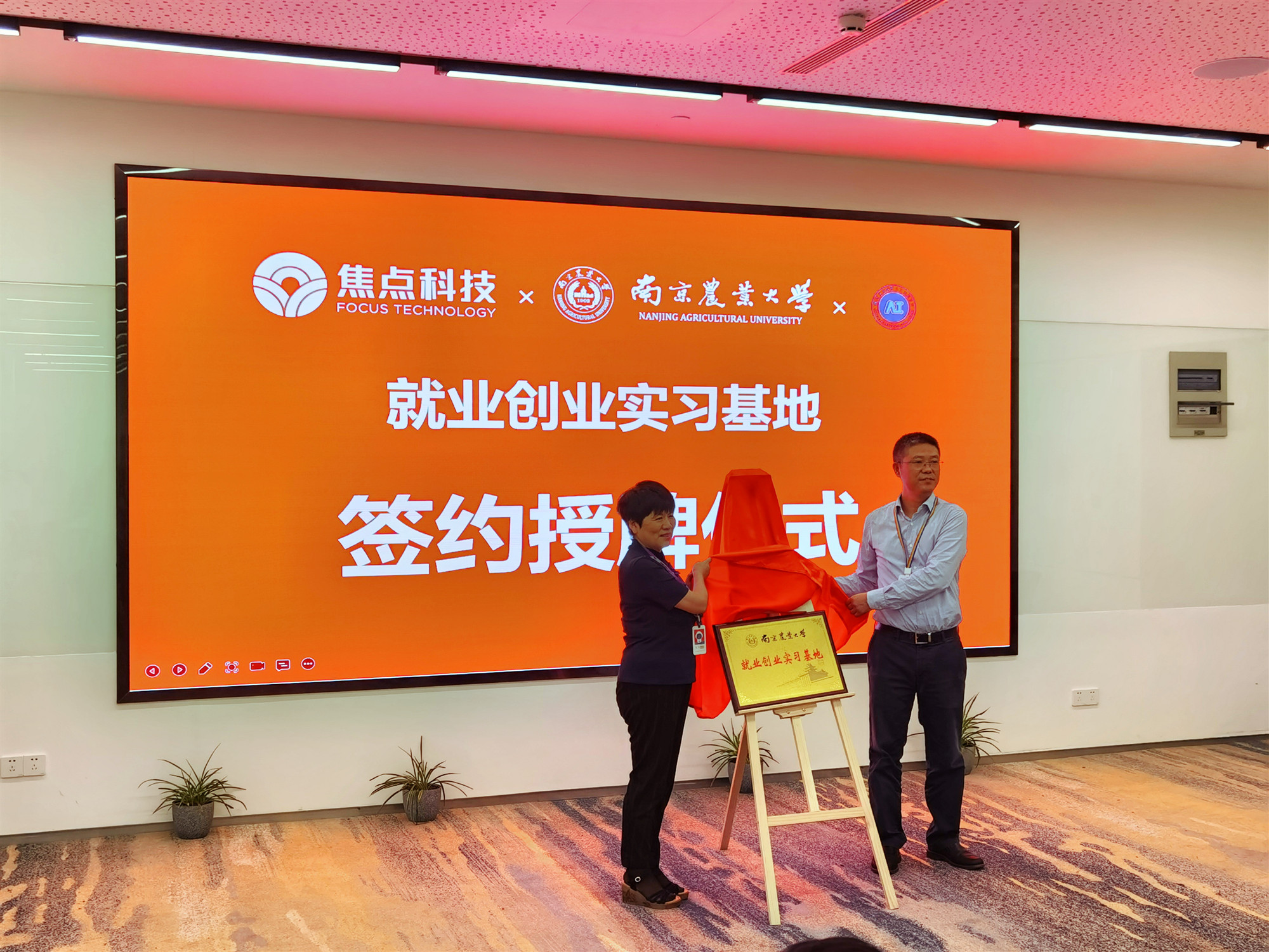 随后,卢伟、何学勇代表双方签订了就业创业实习共建协议,沈明霞、成俊杰代表校企双方共同为南京农业大学“就业创业实习基地”揭牌。